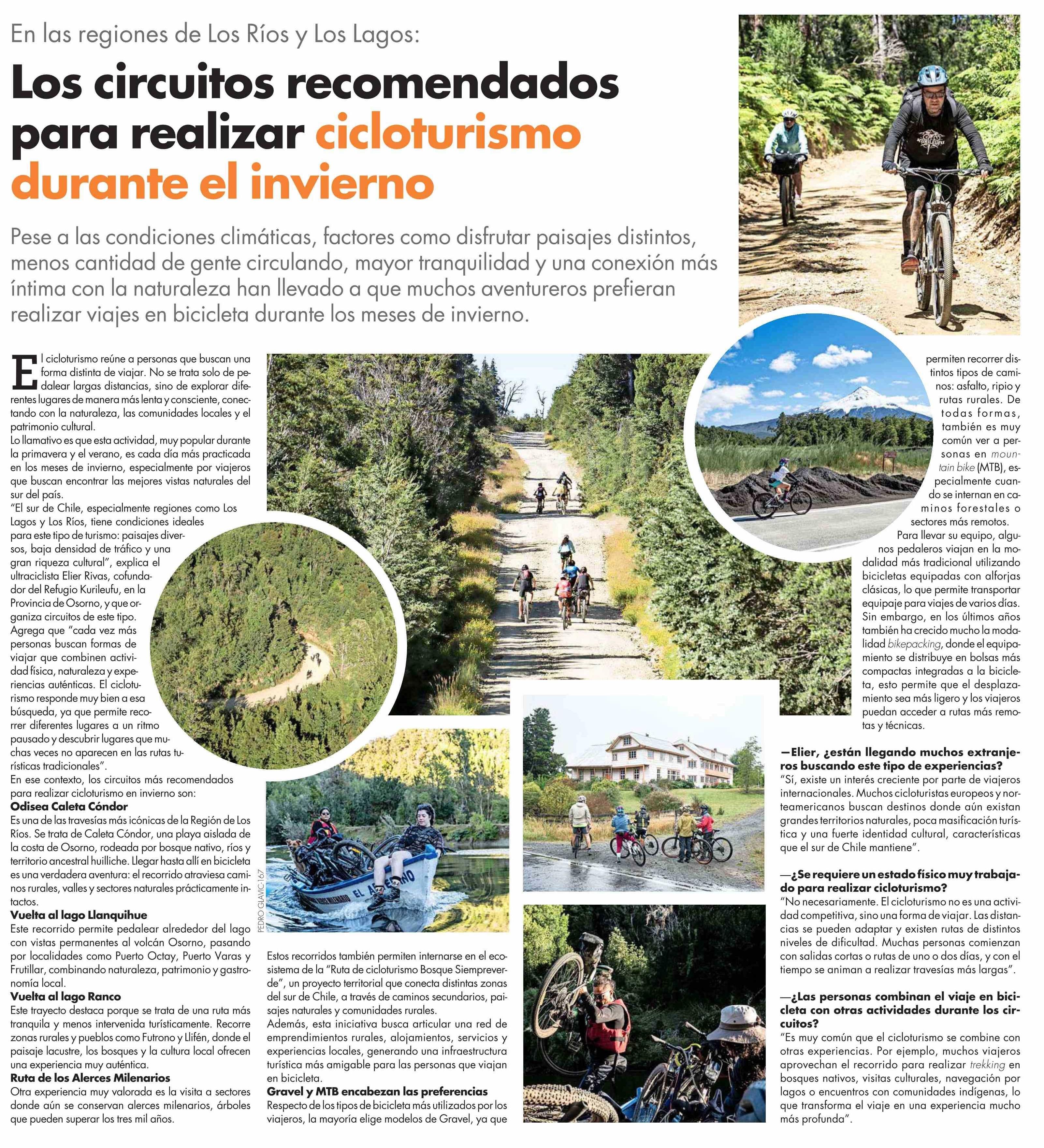 Los circuitos recomendados para realizar cicloturismo durante el invierno 07-04-2026 El Mercurio |