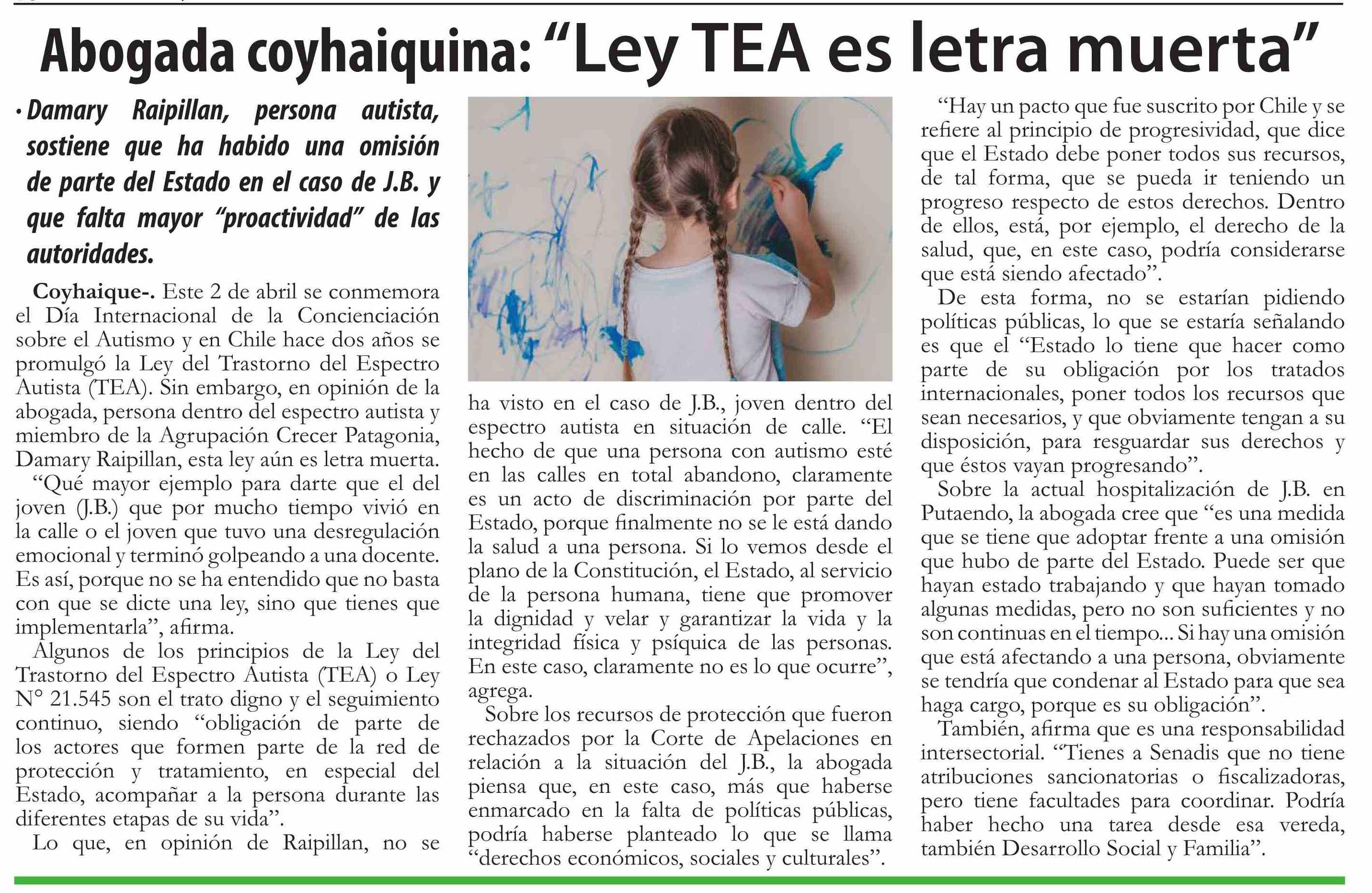 | Título: | Abogada coyhaiquina: “Ley TEA es letra muerta” |