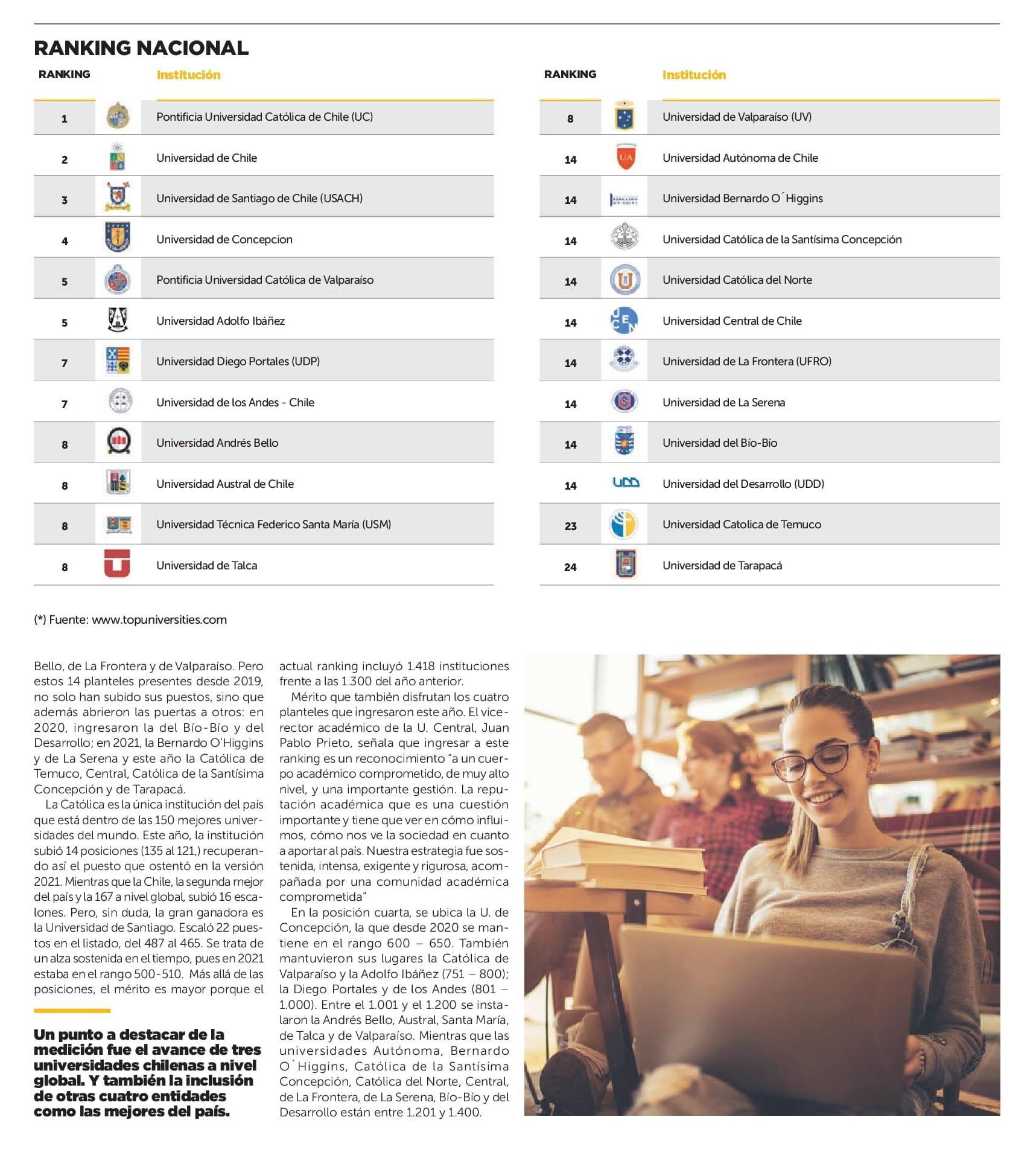Las mejores universidades de Chile, según QS 01-07-2022 La Tercera |