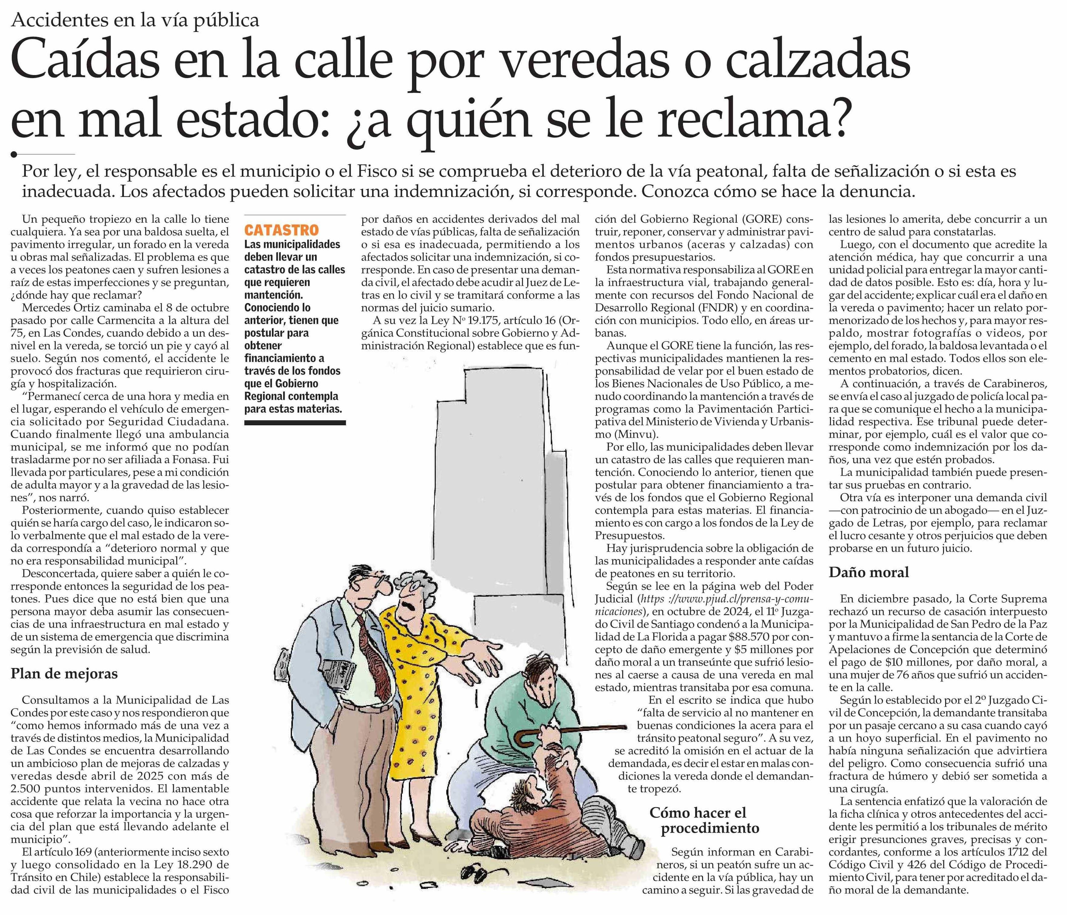 Caídas en la calle por veredas o calzadas en mal estado: ¿a quién se le reclama? 01-03-2026 El Mercurio |