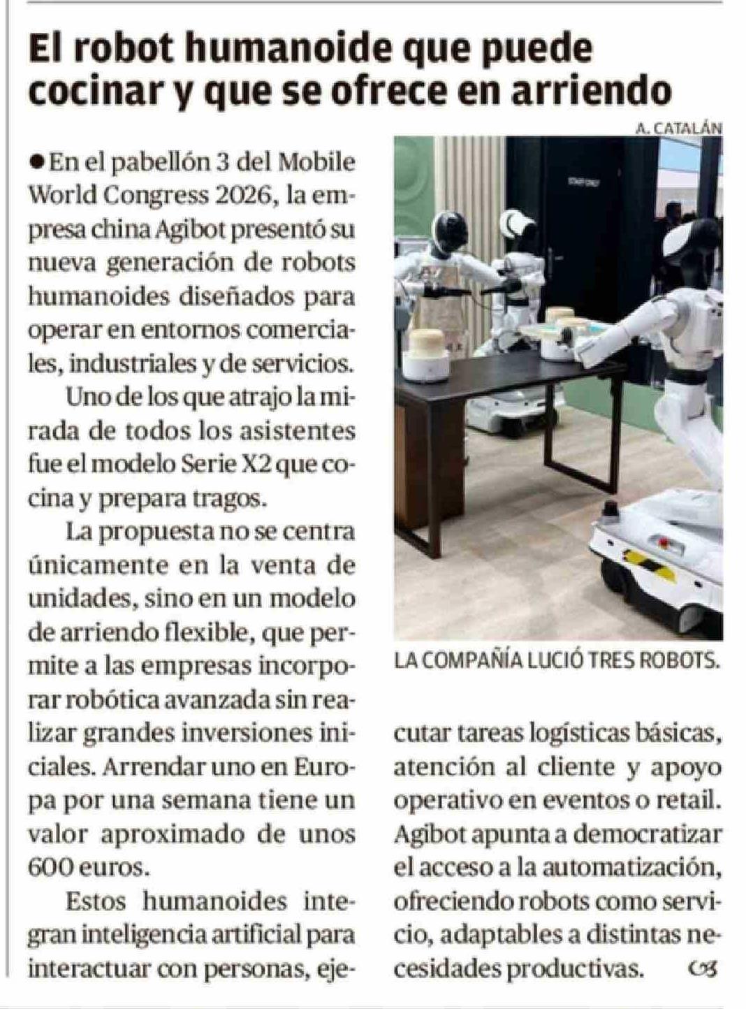 El robot humanoide que puede cocinar y que se ofrece en arriendo 05-03-2026 Crónica de Chillán |
