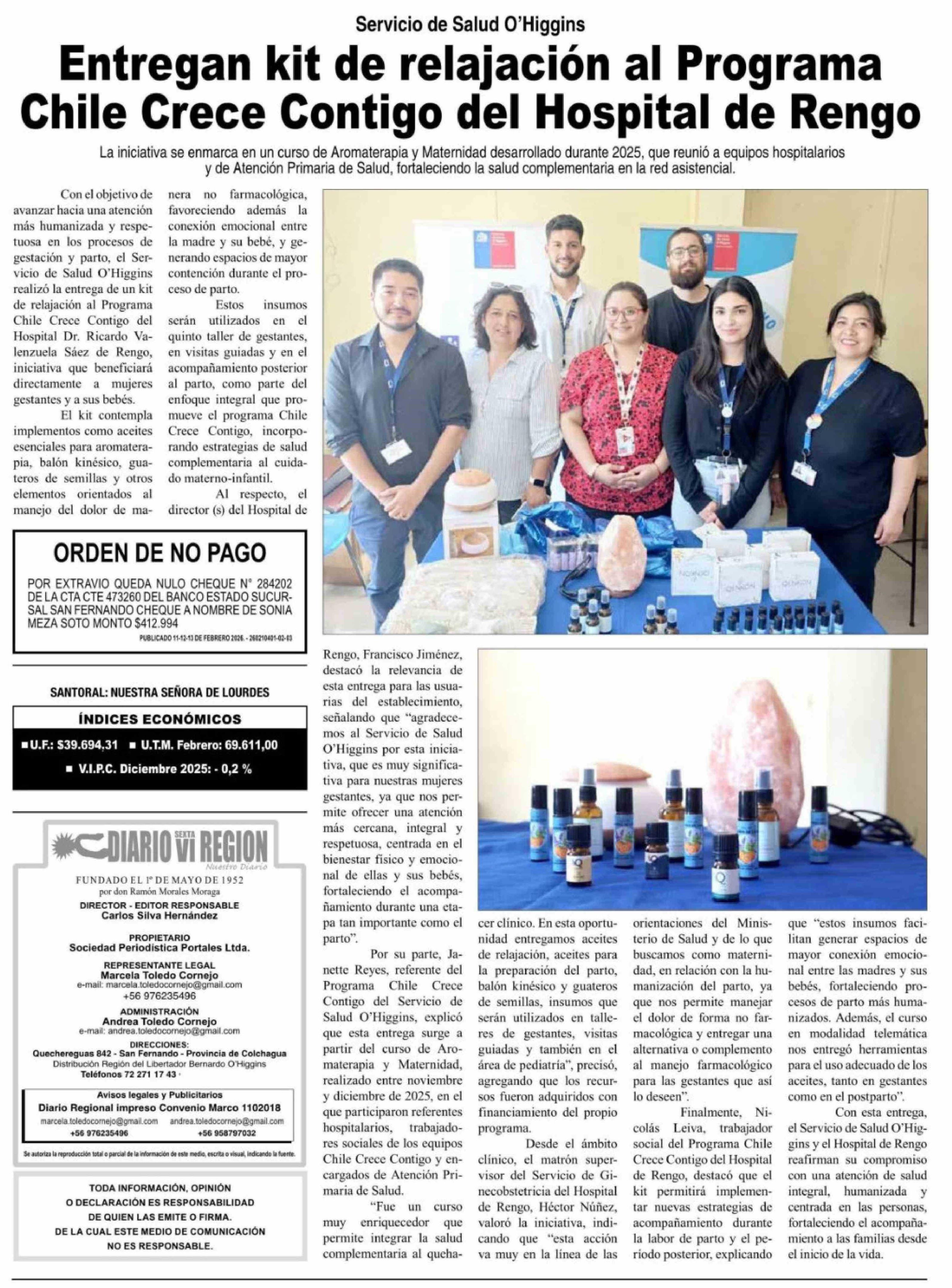 Fecha: 11-02-2026 Sector: Noticia general Región: Región del Libertador General Bernardo O'Higgins