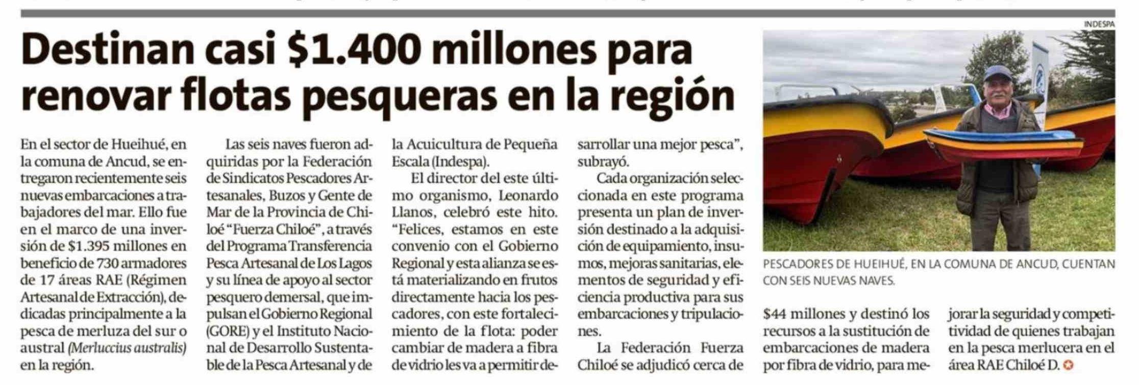 Destinan casi $1.400 millones para renovar flotas pesqueras en la región 04-03-2026 La Estrella de Chiloé |