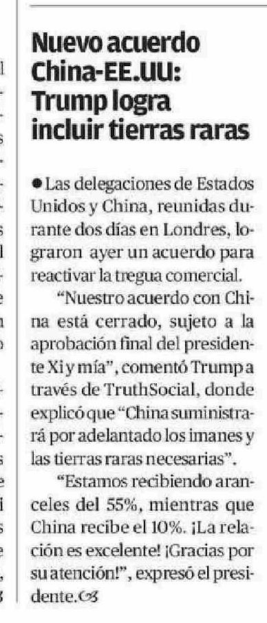 Título: Nuevo acuerdo China-EE.UU: Trump logra incluir tierras raras