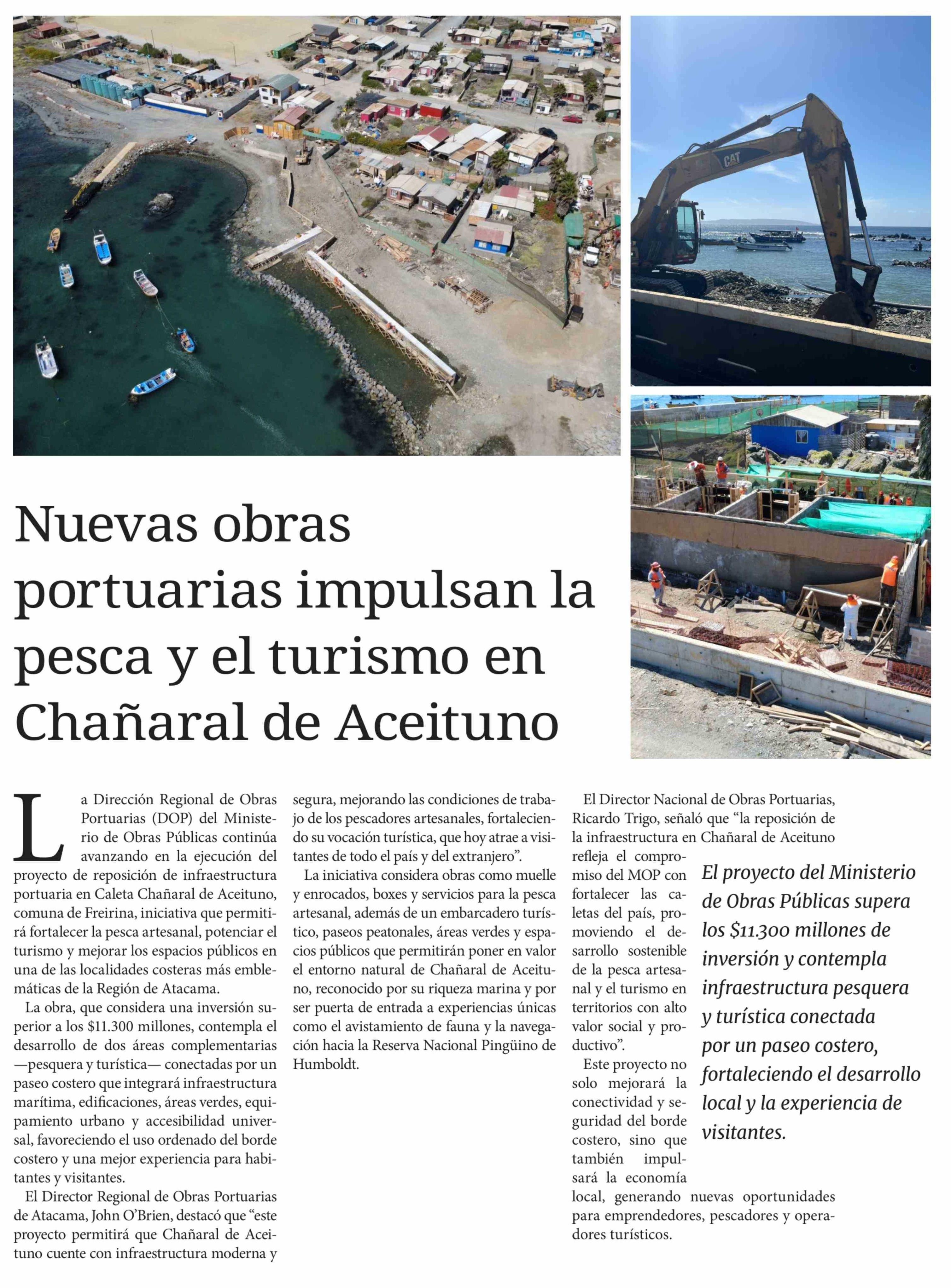 | Título: | Nuevas obras portuarias impulsan la pesca y el turismo en Chañaral de Aceituno |