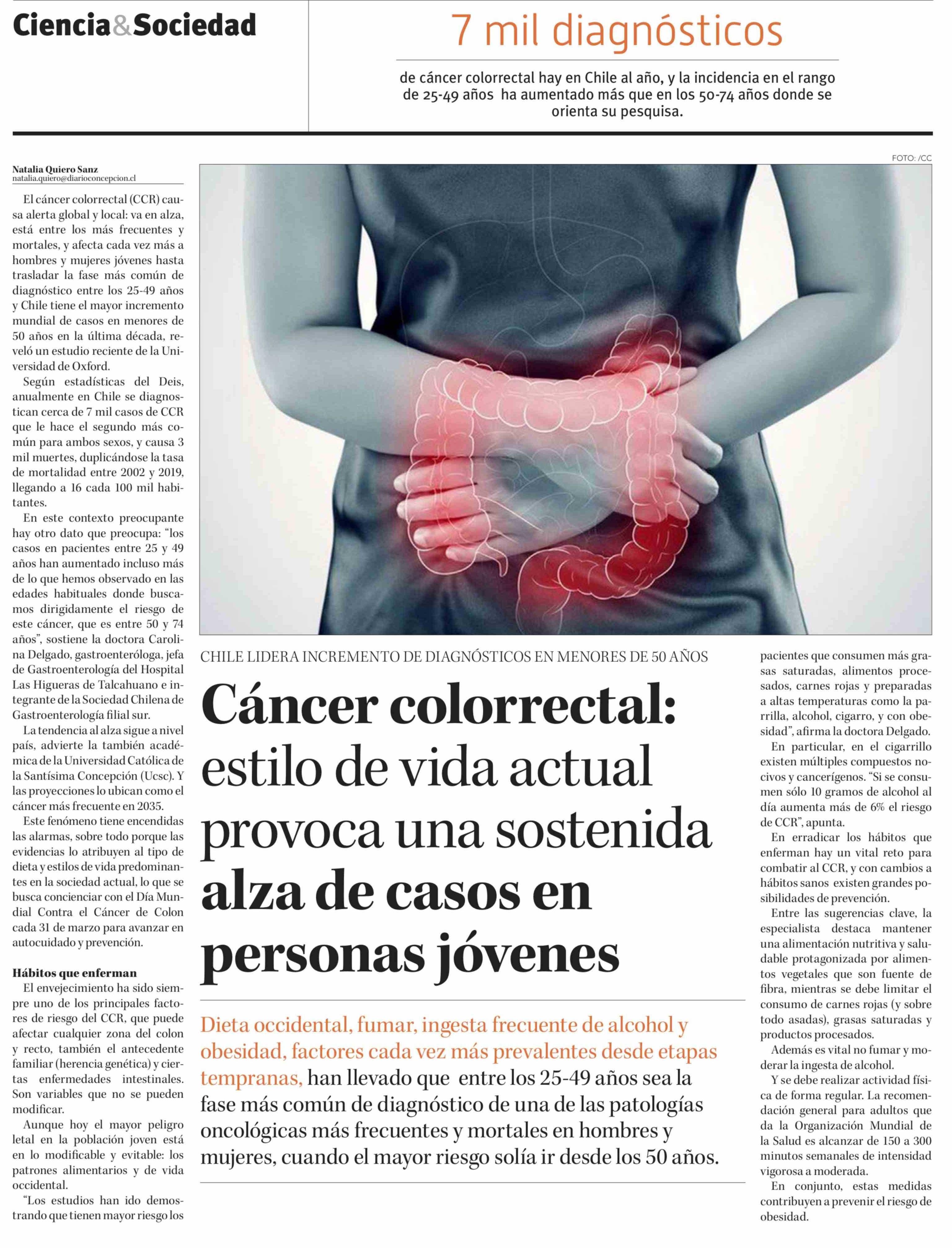 Cáncer colorrectal: estilo de vida actual provoca una sostenida alza de casos en personas jóvenes 03-04-2026 Diario Concepción |