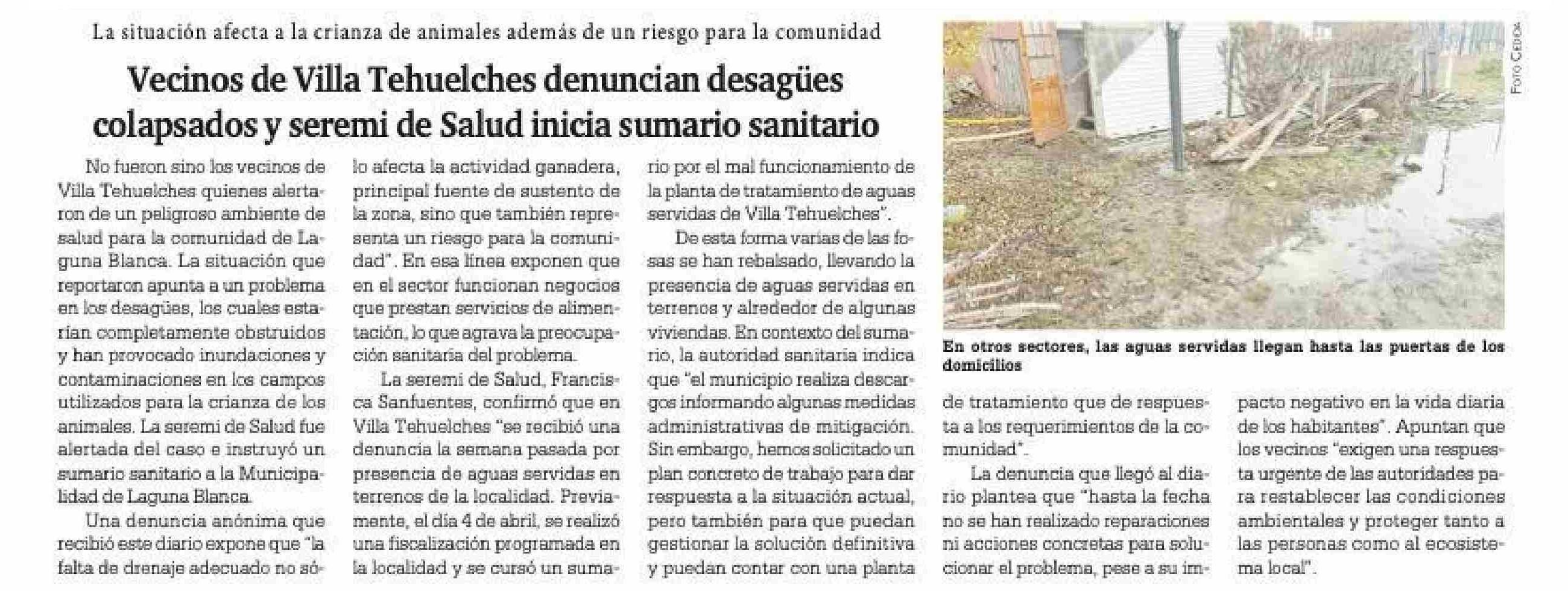 Título: Vecinos de Villa Tehuelches denuncian desagiies colapsados y seremi de Salud inicia sumario sanitario