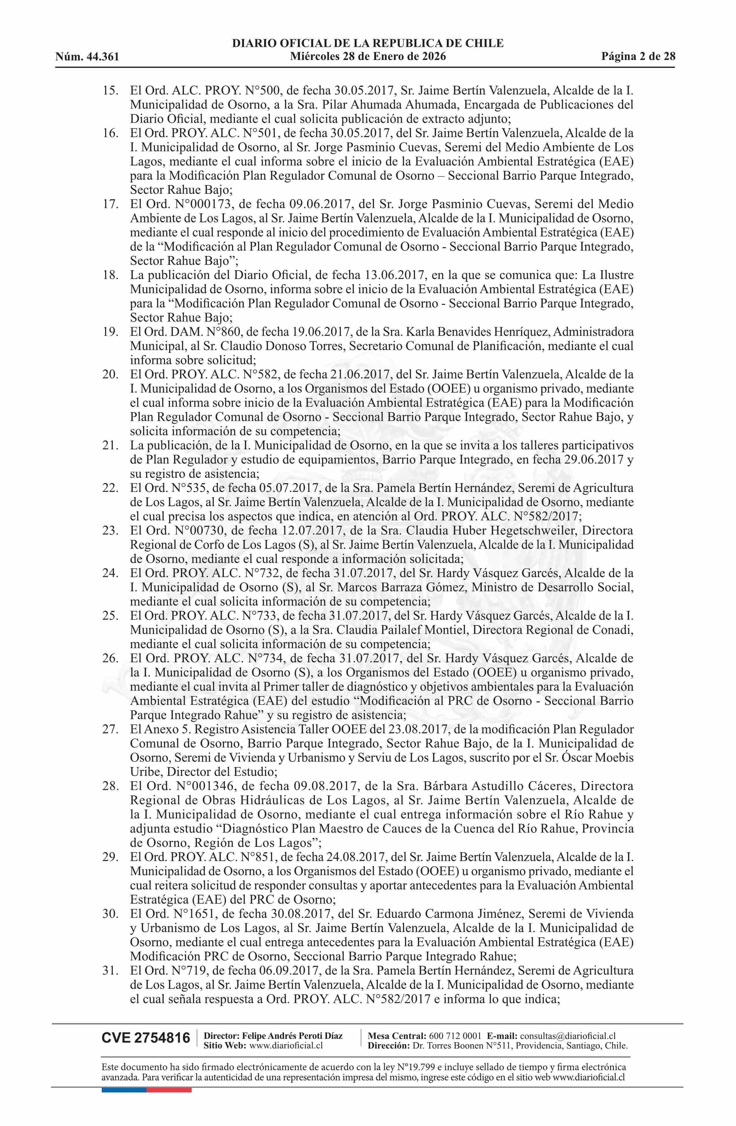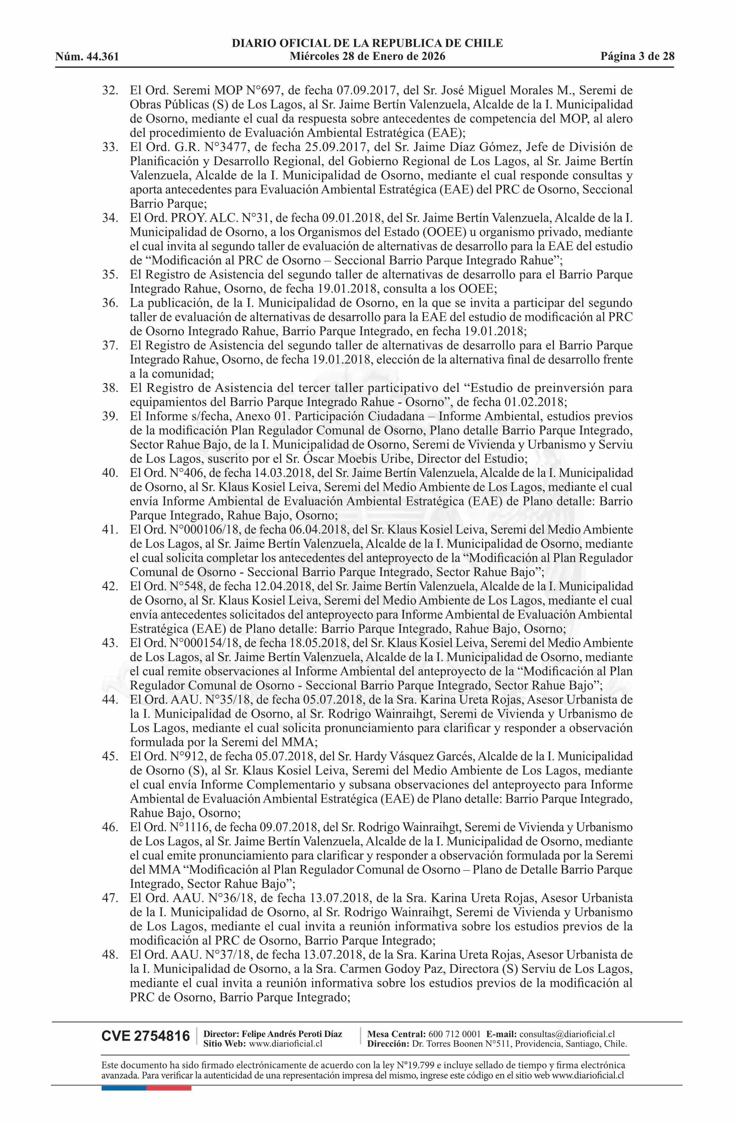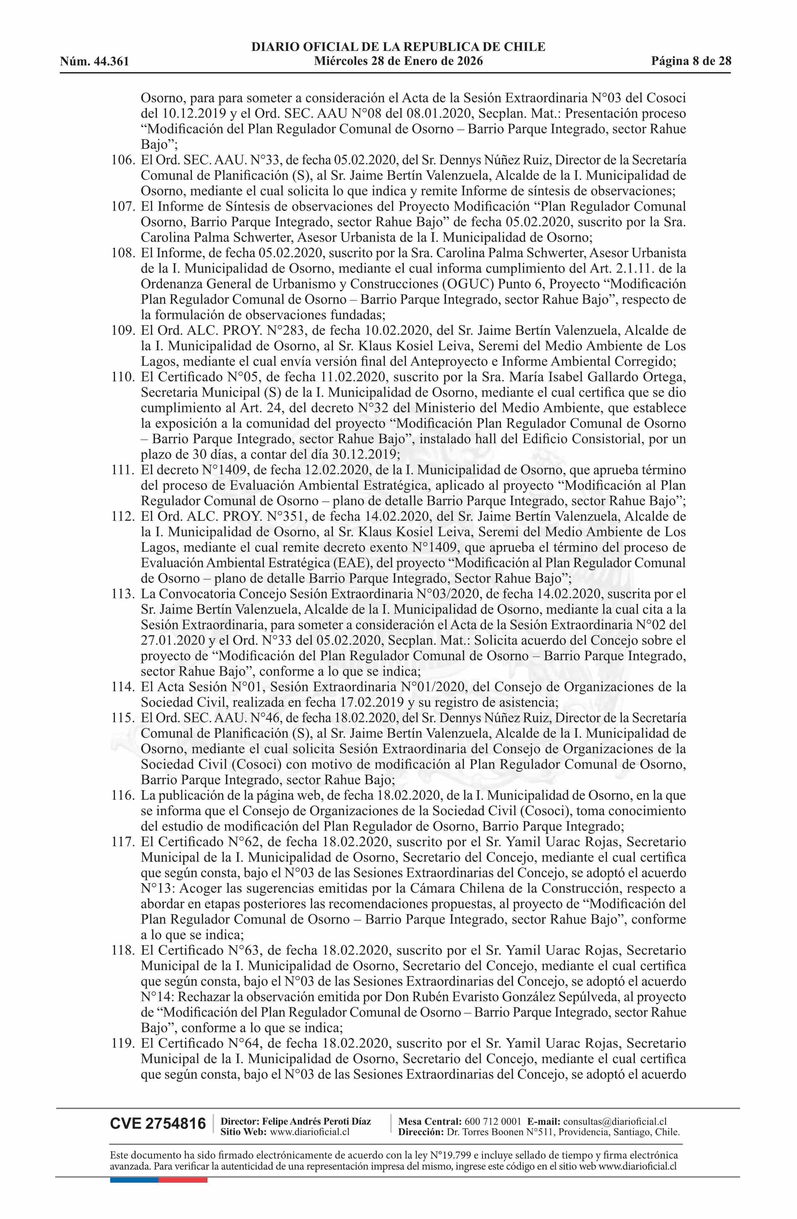 Resolución número 9, de 2025.- Promulga aprobación de la modificación del Plan Regulador Comunal de Osorno - Barrio Parque Integrado, Sector Rahue Bajo 28-01-2026 Diario Oficial Edición Electrónica |