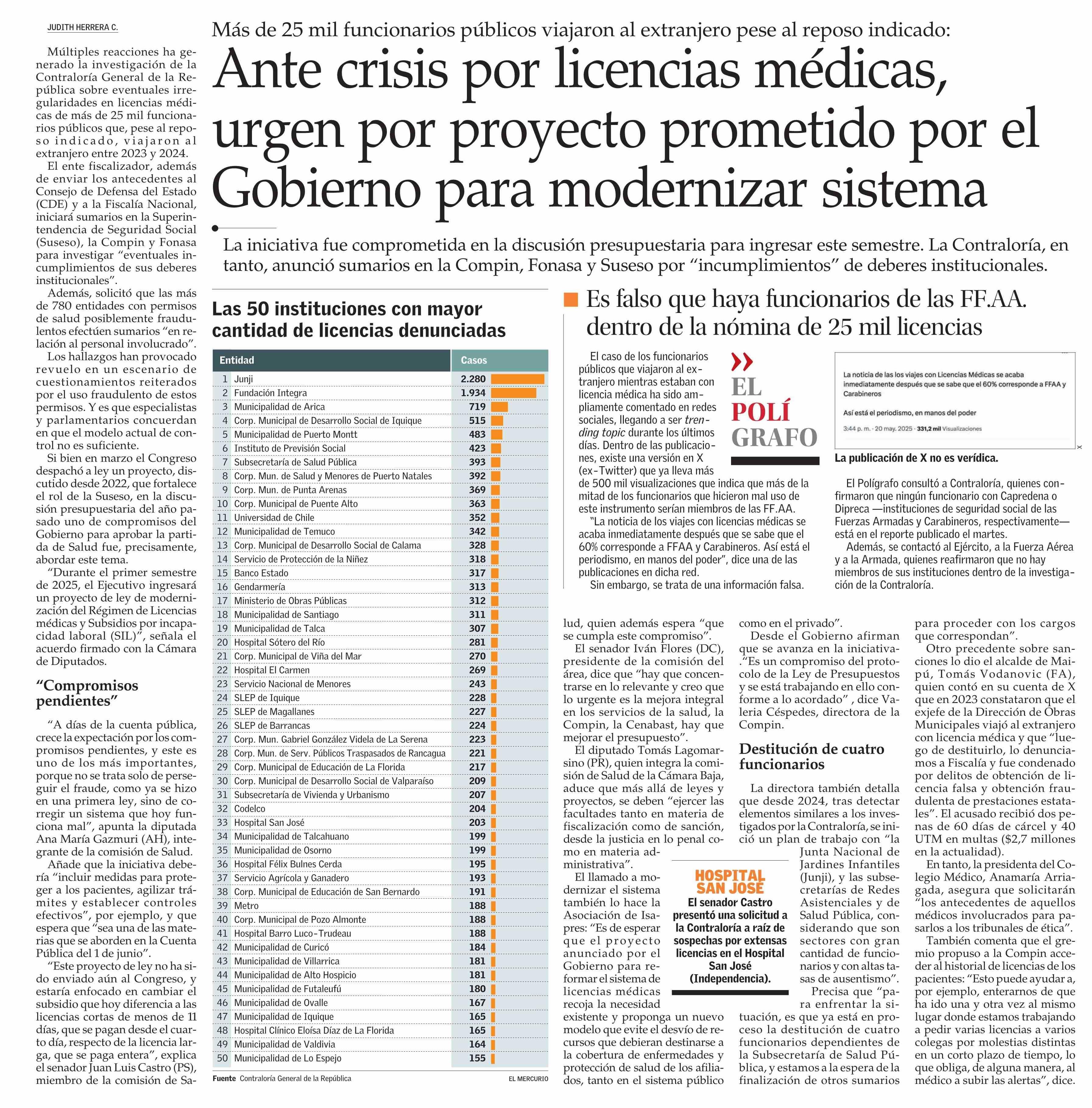 Ante crisis por licencias médicas,urgen por proyecto prometido por el Gobierno para modernizar sistema 23-05-2025 El Mercurio |