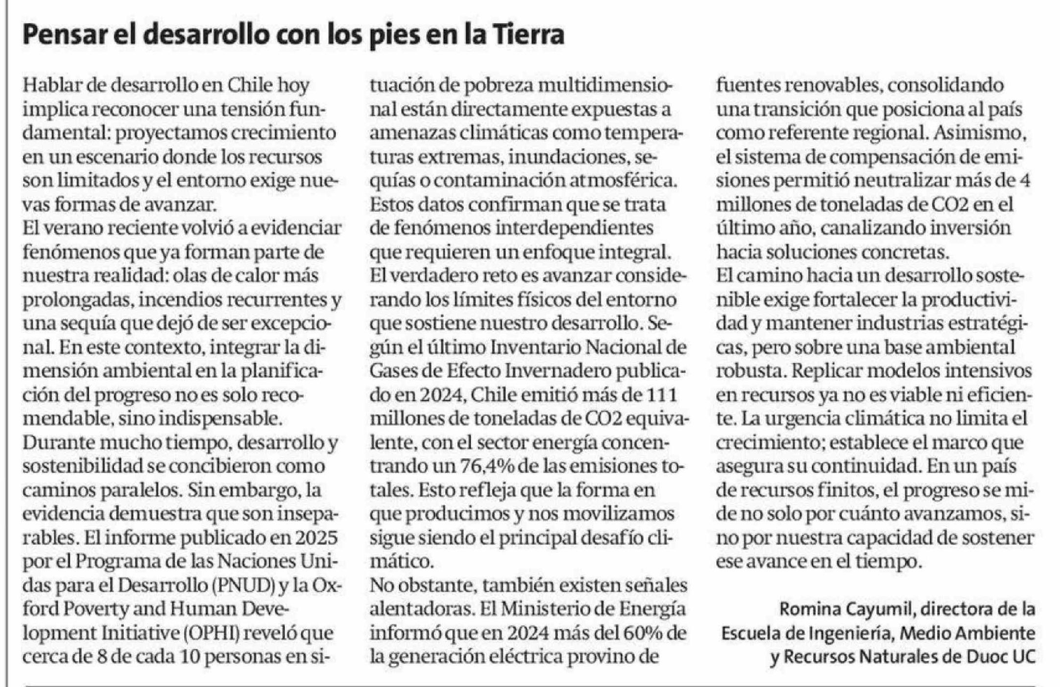 Cartas: Pensar el desarrollo con los pies en la Tierra 21-04-2026 La Estrella de Iquique |