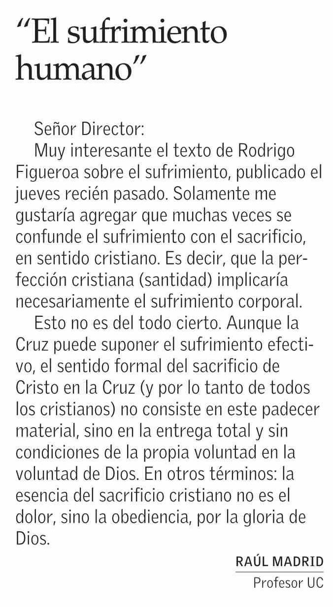 Cartas: “El sufrimiento humano” 11-01-2026 El Mercurio |