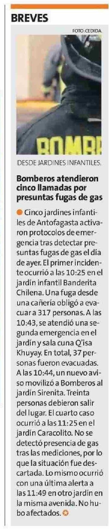 Bomberos atendieron presuntas fugas de gas cinco llamadas por 12-06-2025 La Estrella de Antofagasta |