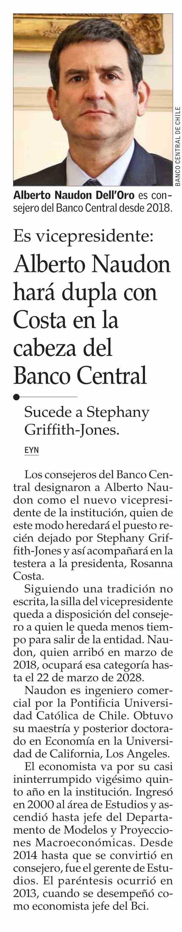 Alberto Naudon hará dupla con Costa en la cabeza del Banco Central 09-01-2026 El Mercurio |