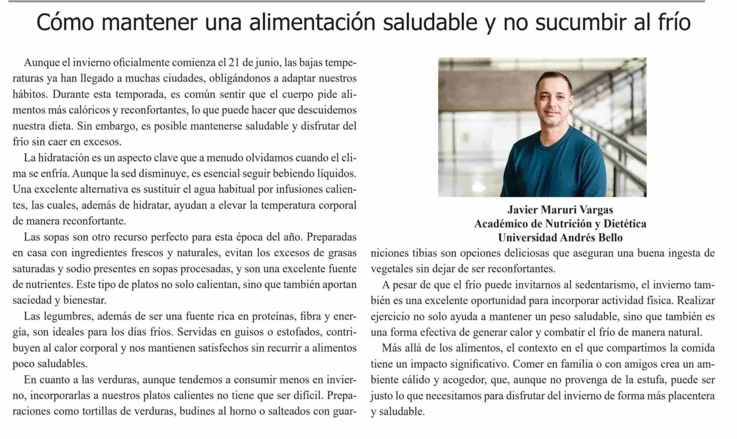 | Título: | COLUMNAS DE OPINIÓN: Cómo mantener una alimentación saludable y no sucumbir al frío |