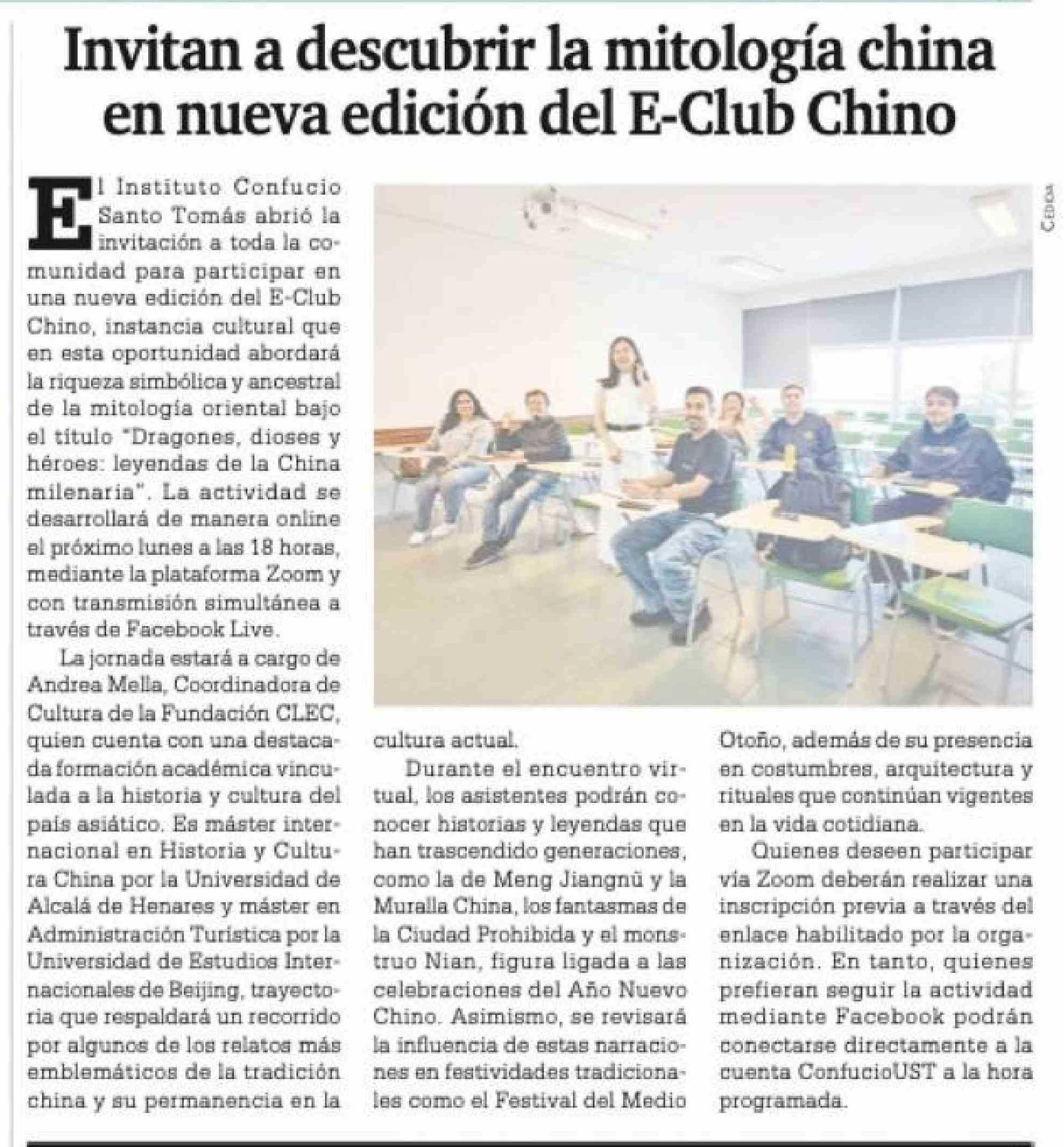 Invitan a descubrir la mitología china en nueva edición del E-Club Chino 23-04-2026 La Prensa Austral |
