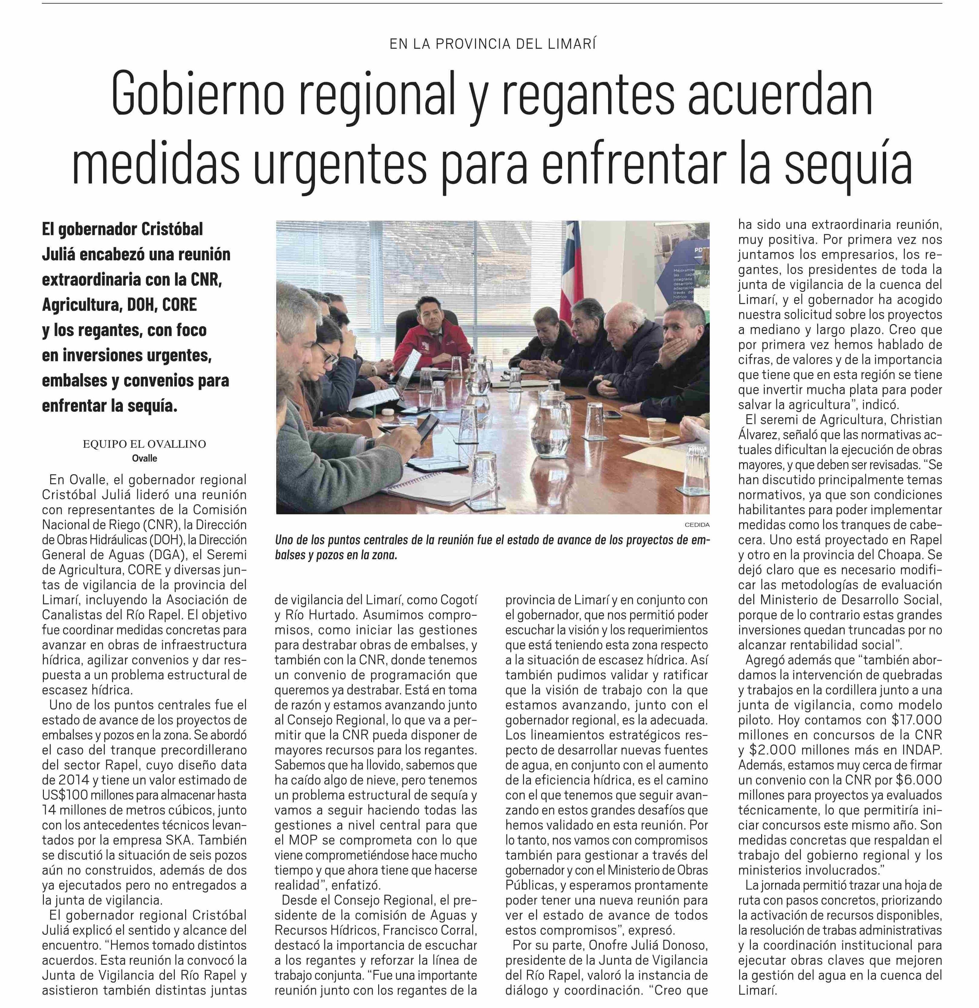 Gobierno regional y regantes acuerdan medidas urgentes para enfrentar la sequía 19-06-2025 El Ovallino |
