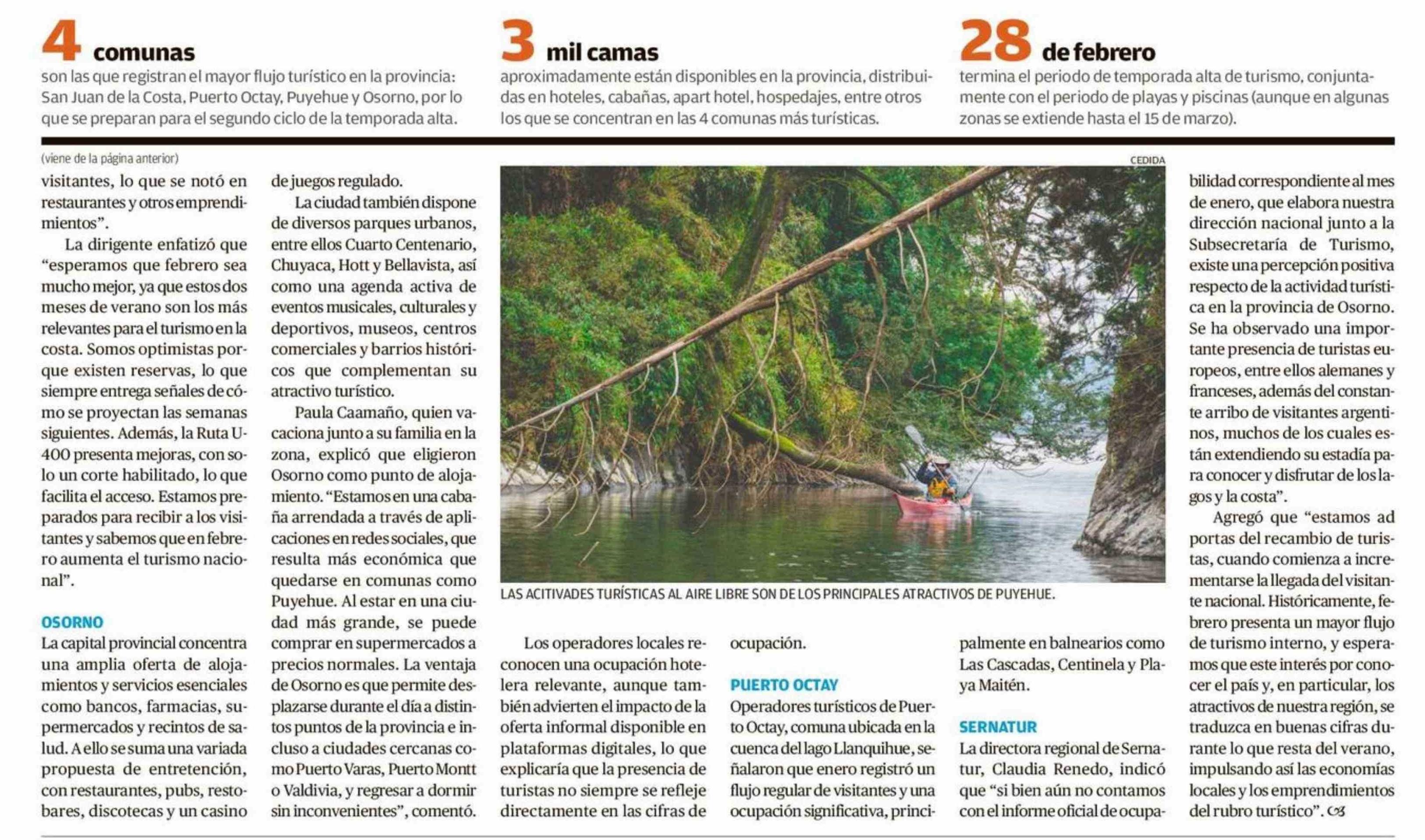 Alta afluencia de turistas marca el mes de enero en la provincia 30-01-2026 El Austral de Osorno |
