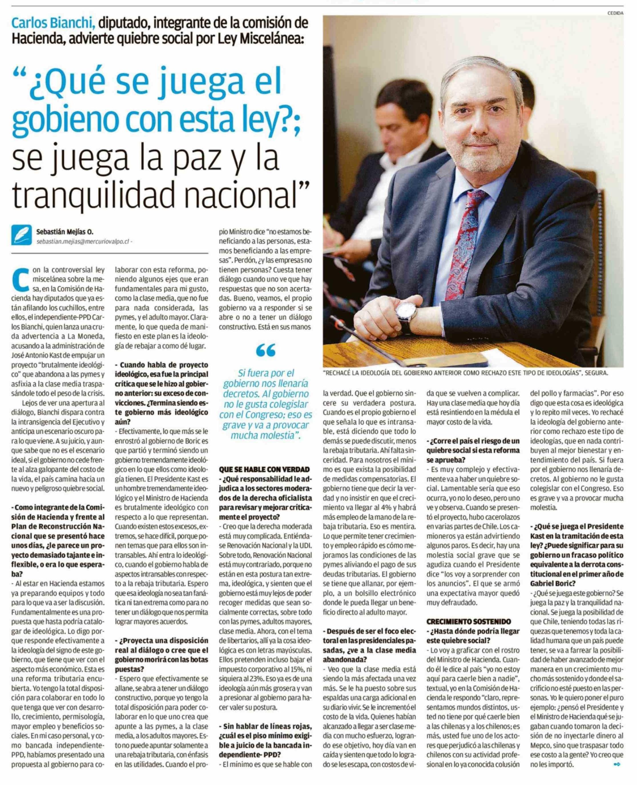 "¿Qué se juega el gobieno con esta ley ?; se juega la paz y la tranquilidad nacional"