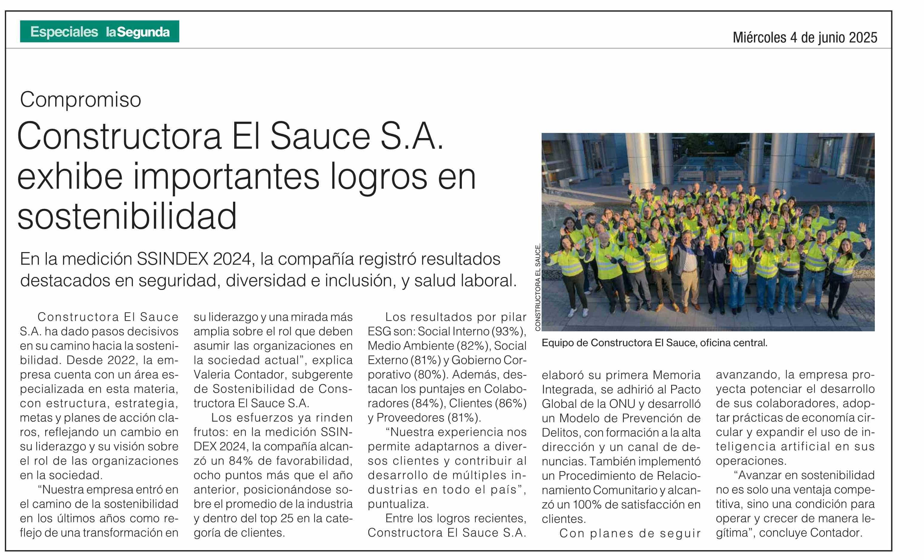 Constructora El Sauce S.A. exhibe importantes logros en sostenibilidad 04-06-2025 La Segunda |