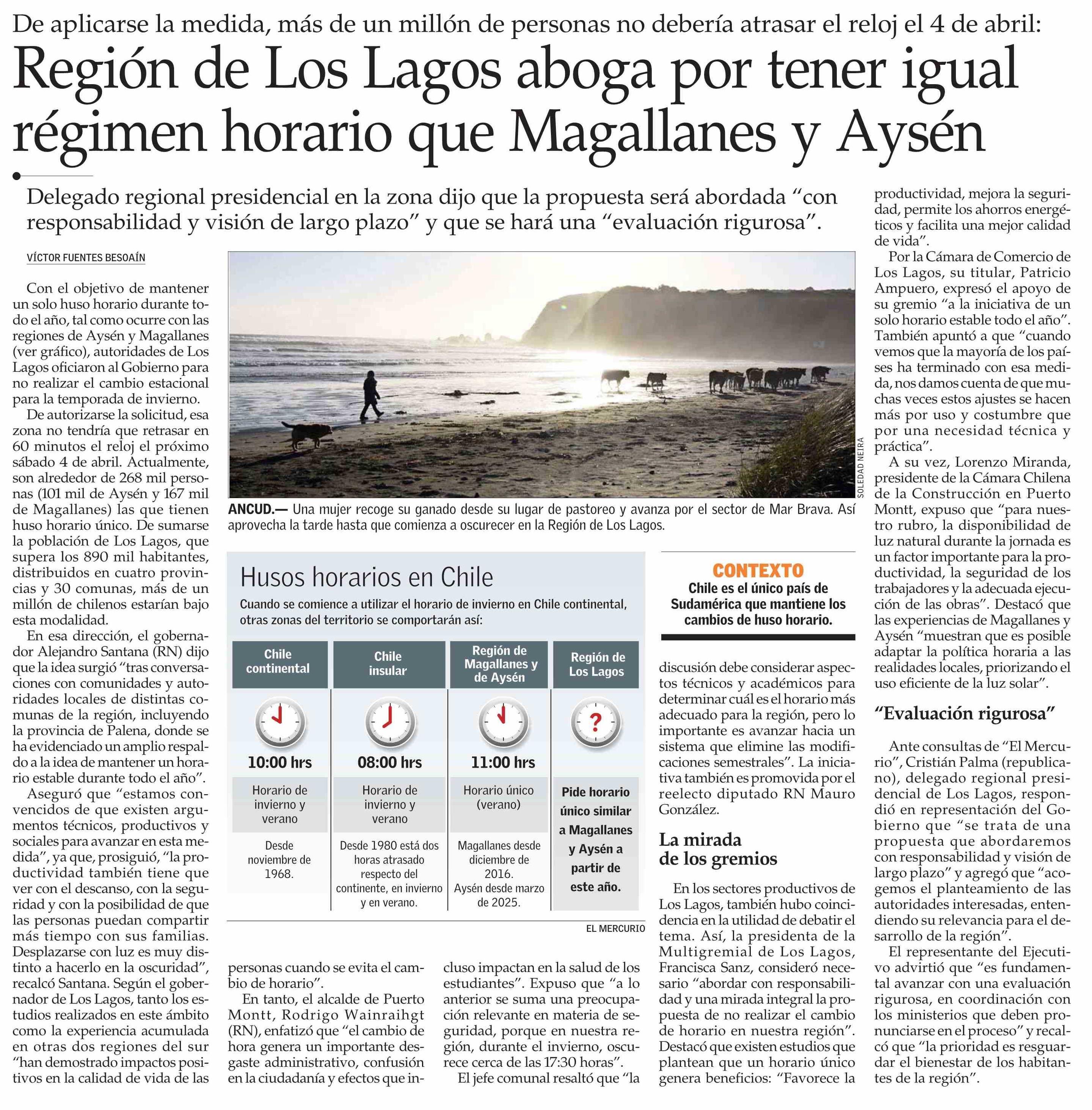 Título: Región de Los Lagos aboga por tener igual régimen horario que Magallanes y Aysén