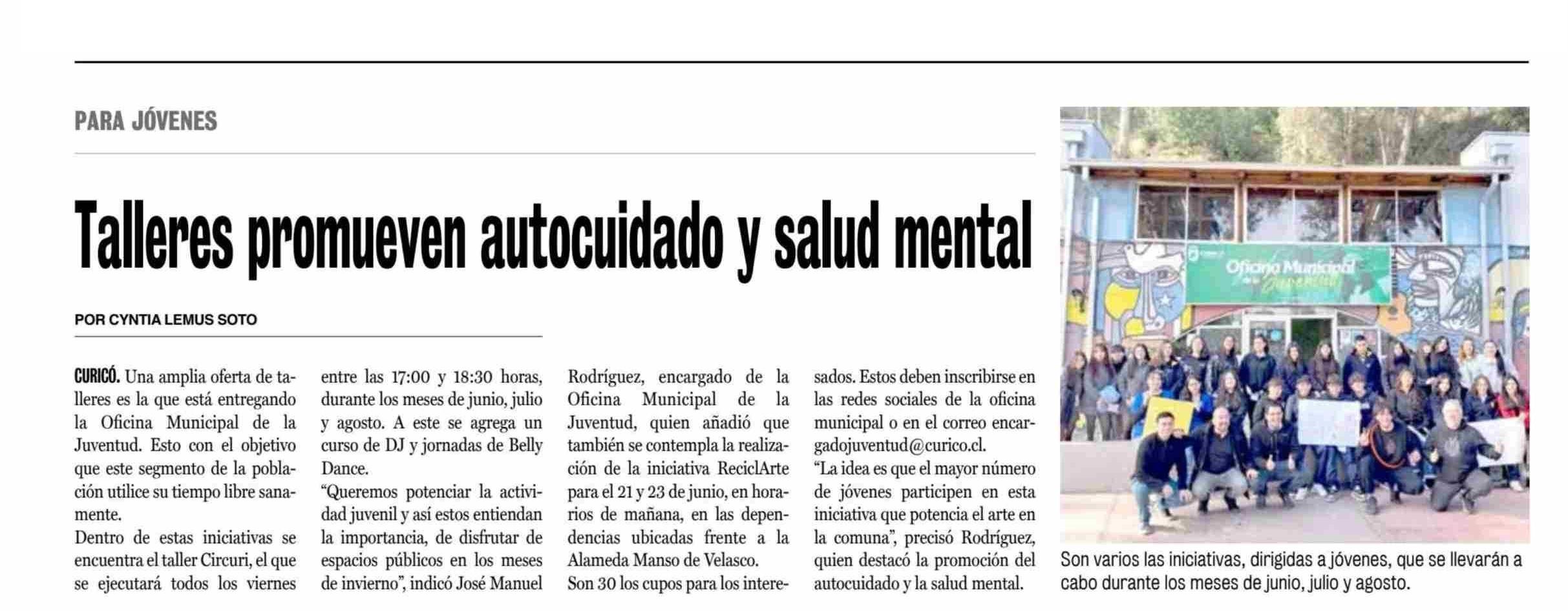 Talleres promueven autocuidado y salud mental 14-06-2025 La Prensa de Curicó |