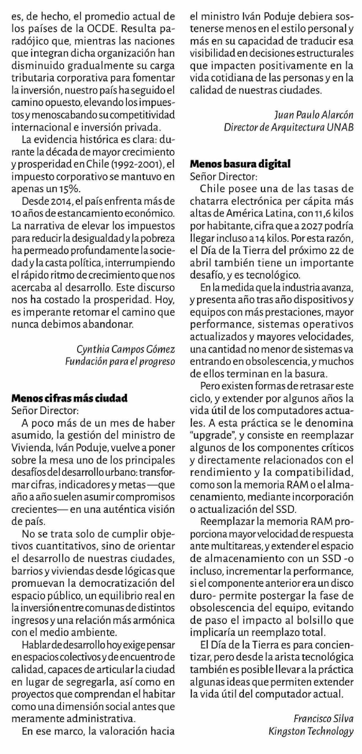 Cartas: Menos cifras mas ciudad 23-04-2026 La Discusión |
