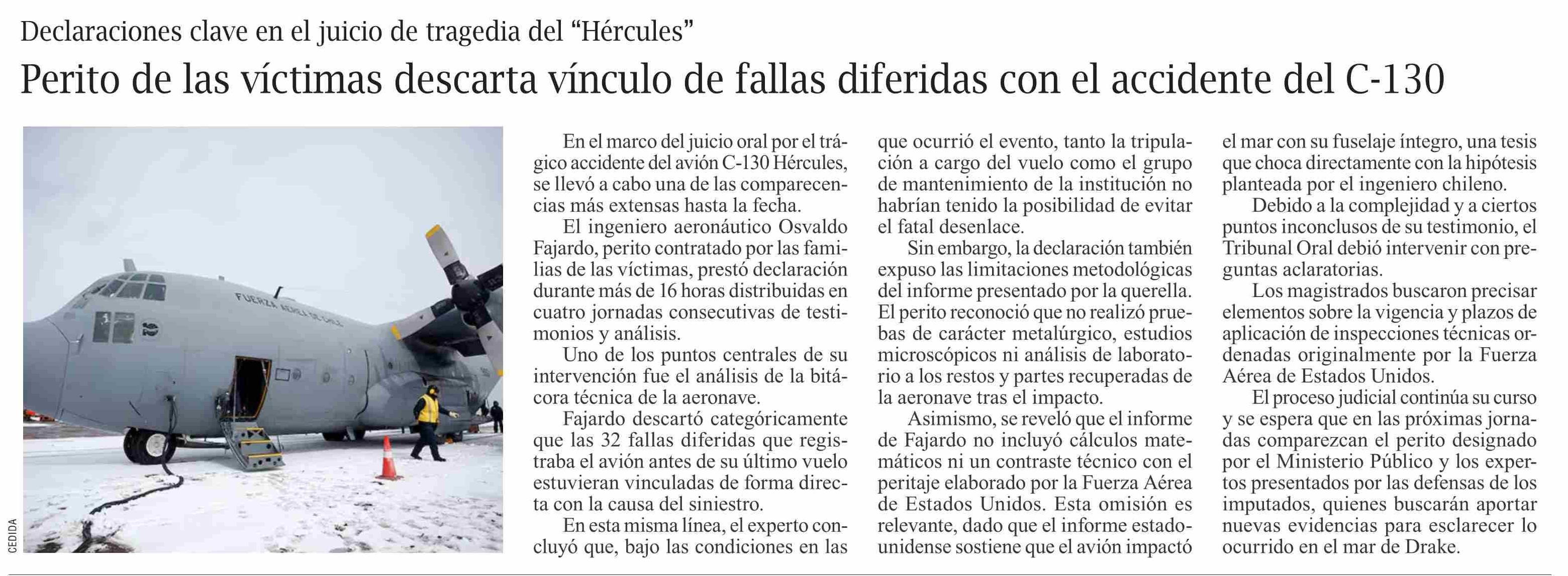 Perito de las víctimas descarta vínculo de fallas diferidas con el accidente del C-130 07-04-2026 El Pingüino |