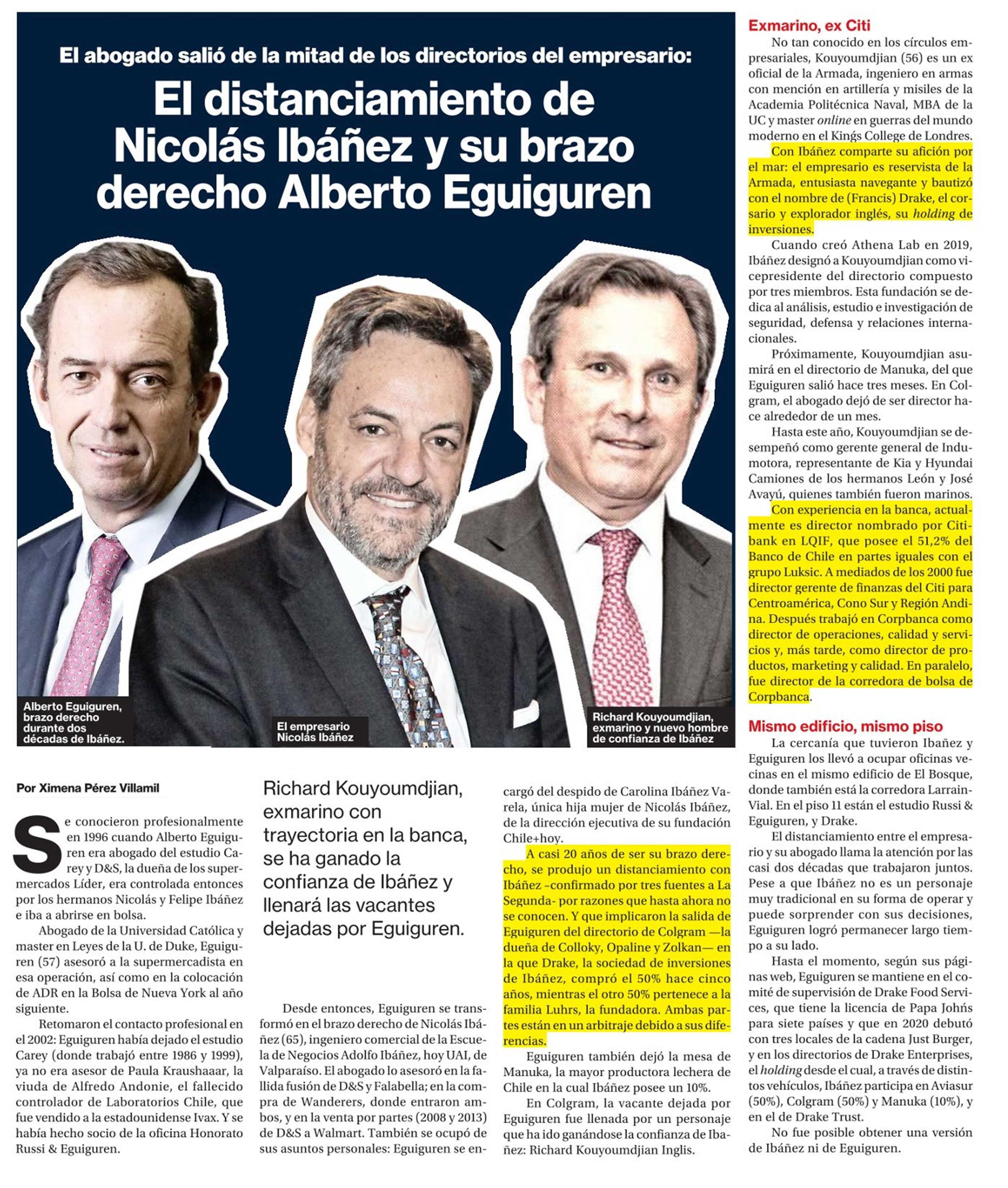 El distanciamiento de Nicolás Ibáñez y su brazo derecho Alberto Eguiguren 30-09-2021 La Segunda |