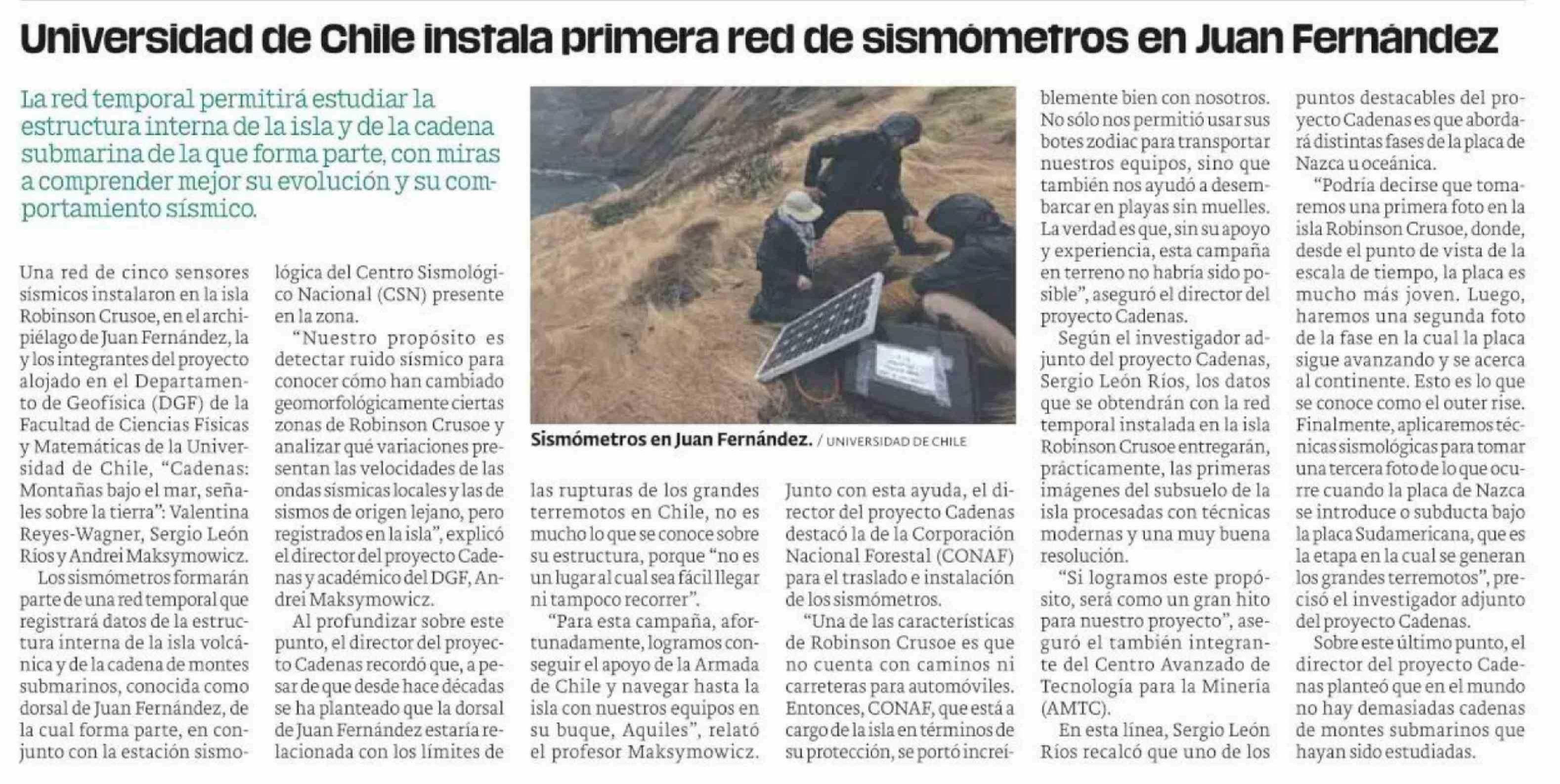 Título: Universidad de Chile instala primera red de sismometros en Juan Fernandez