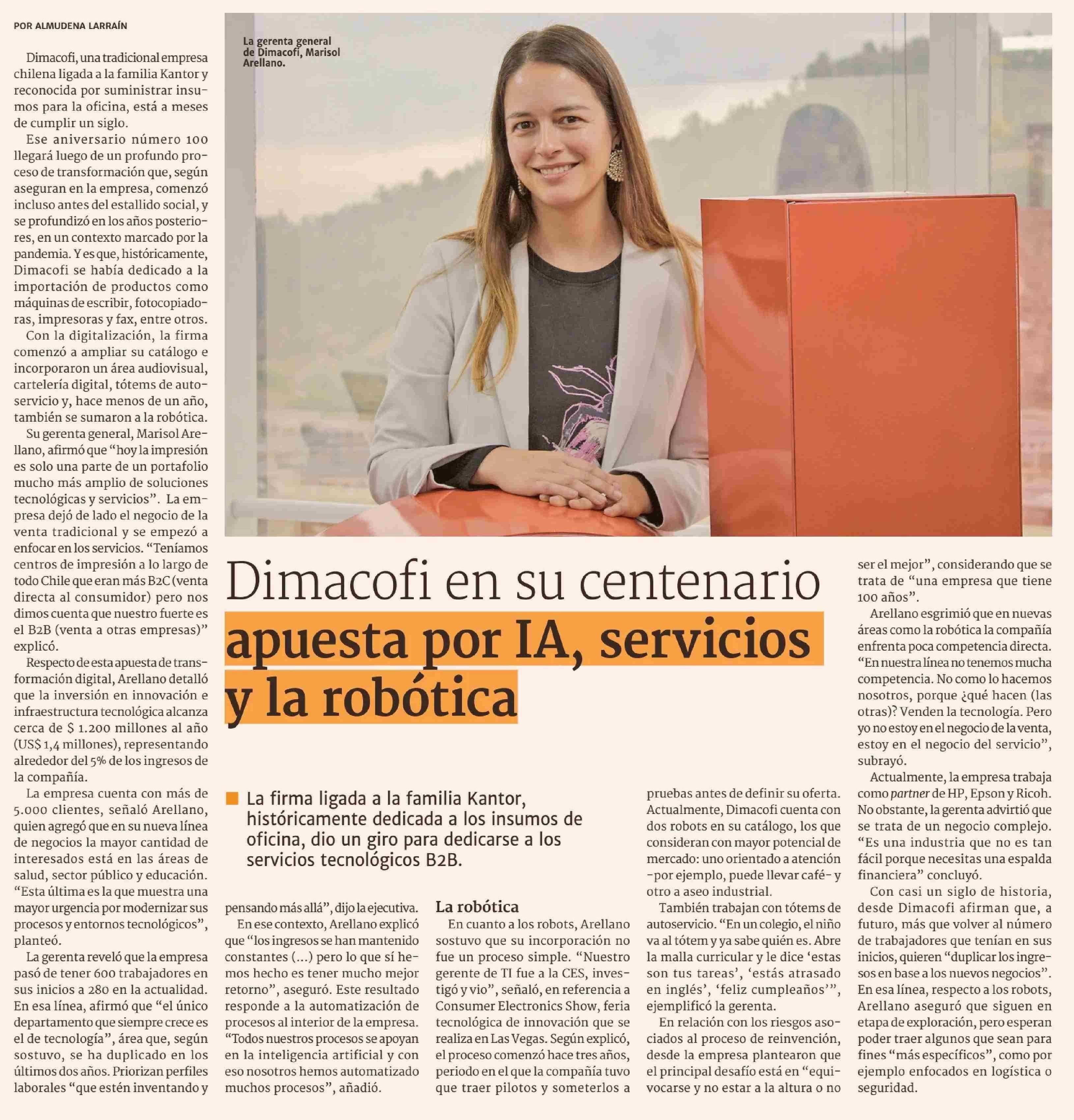 Dimacofi en su centenario apuesta por IA, servicios y la robótica 26-01-2026 Diario Financiero |
