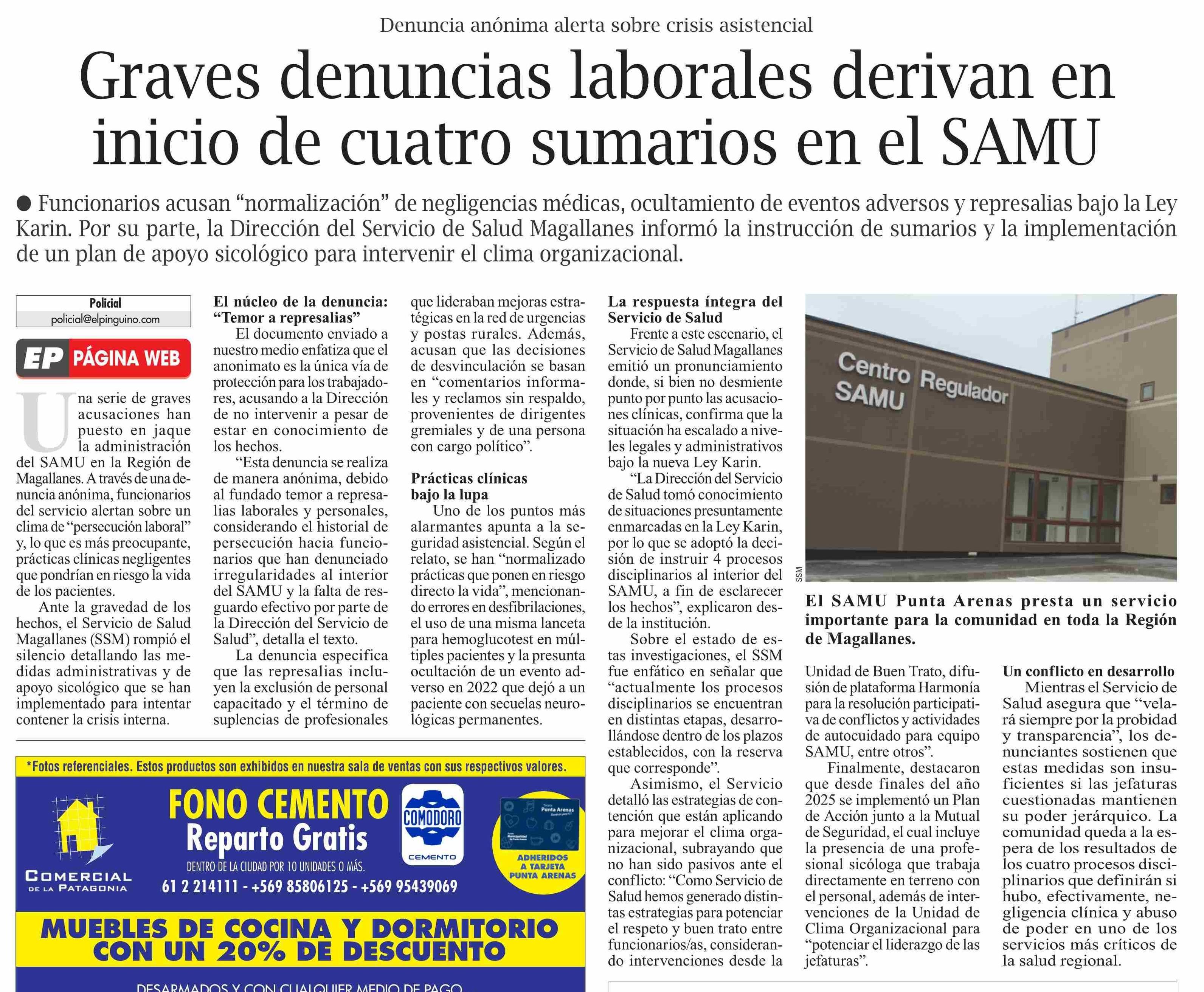 Título: Graves denuncias laborales derivan en inicio de cuatro sumarios en el SAMU