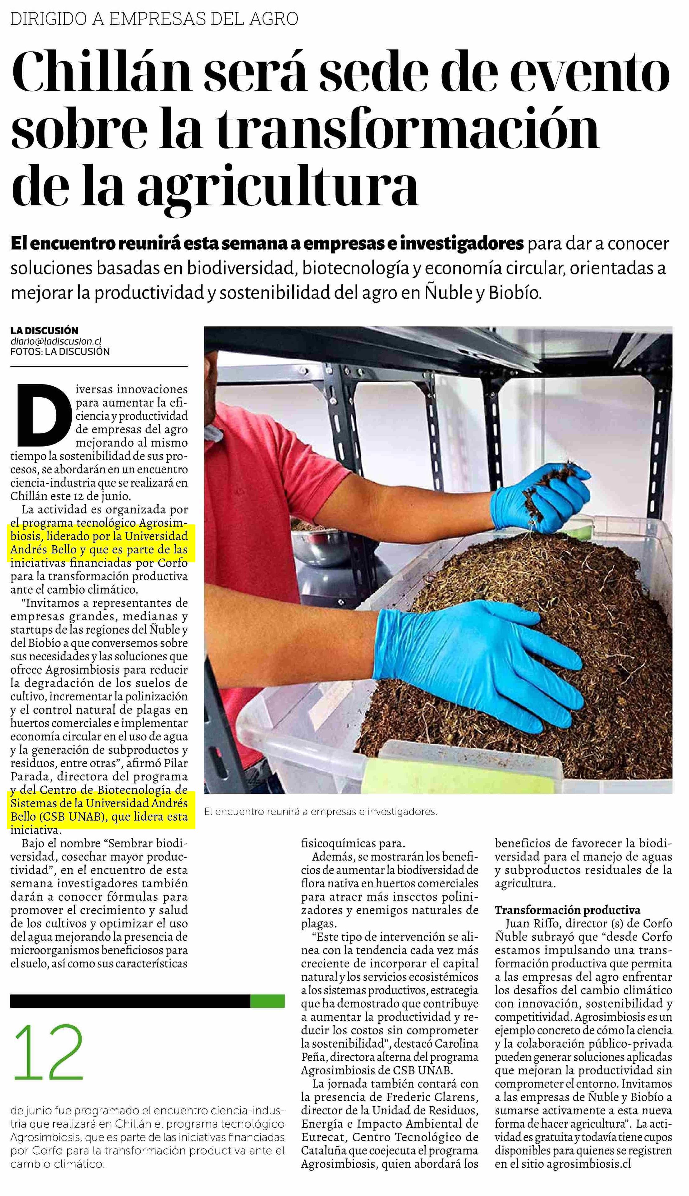 Chillán será sede de evento sobre la transformación de la agricultura 09-06-2025 La Discusión |