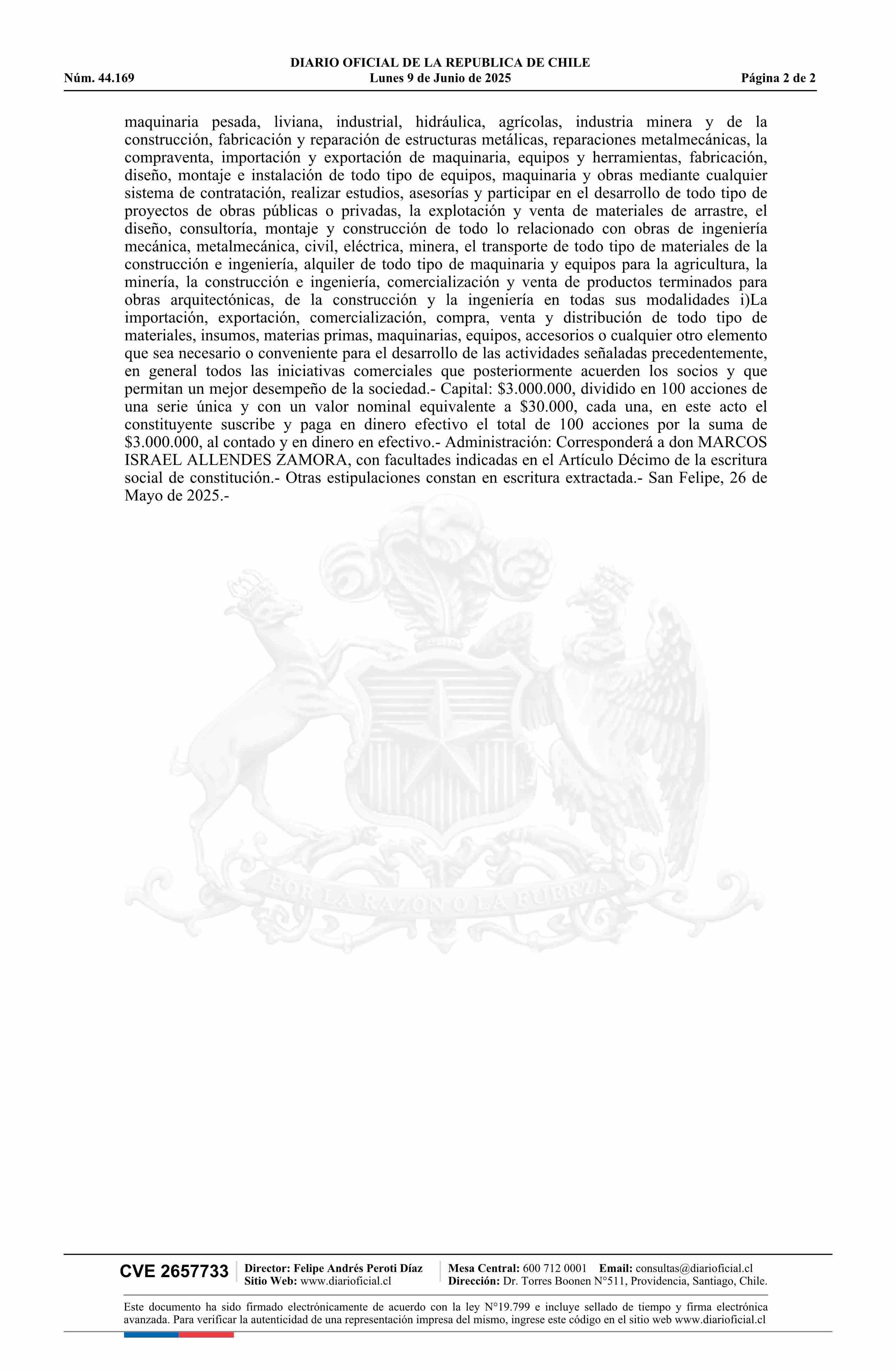 M.A.Z. SERVICIOS INTEGRALES SpA 09-06-2025 Diario Oficial Edición Electrónica |