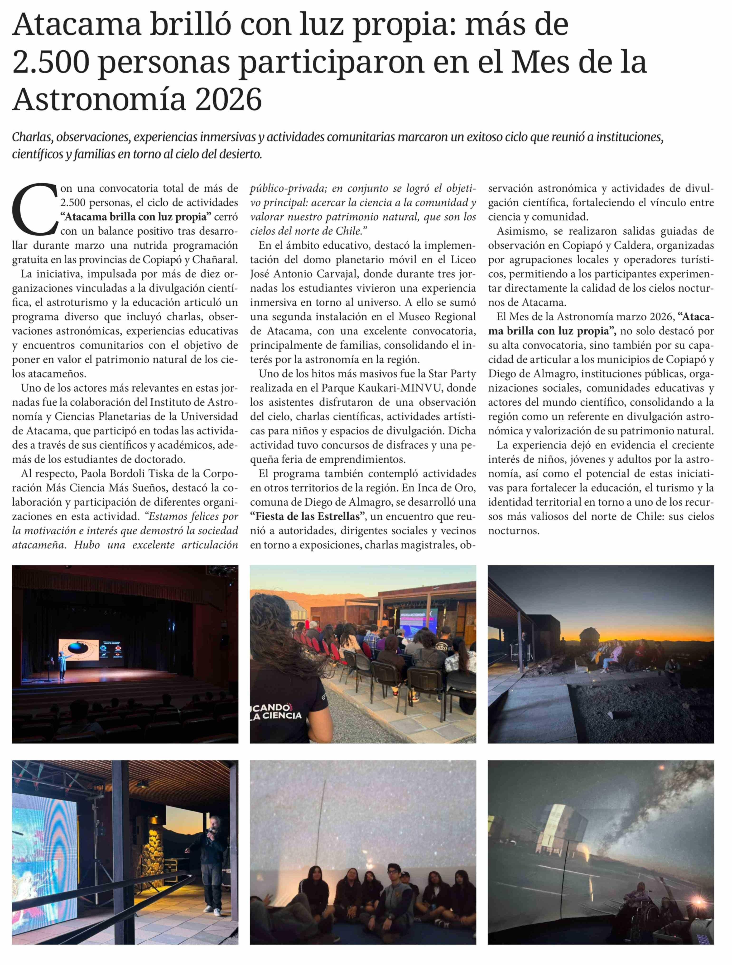 Título: Atacama brilló con luz propia: más de 2.500 personas participaron en el Mes de la Astronomía 2026