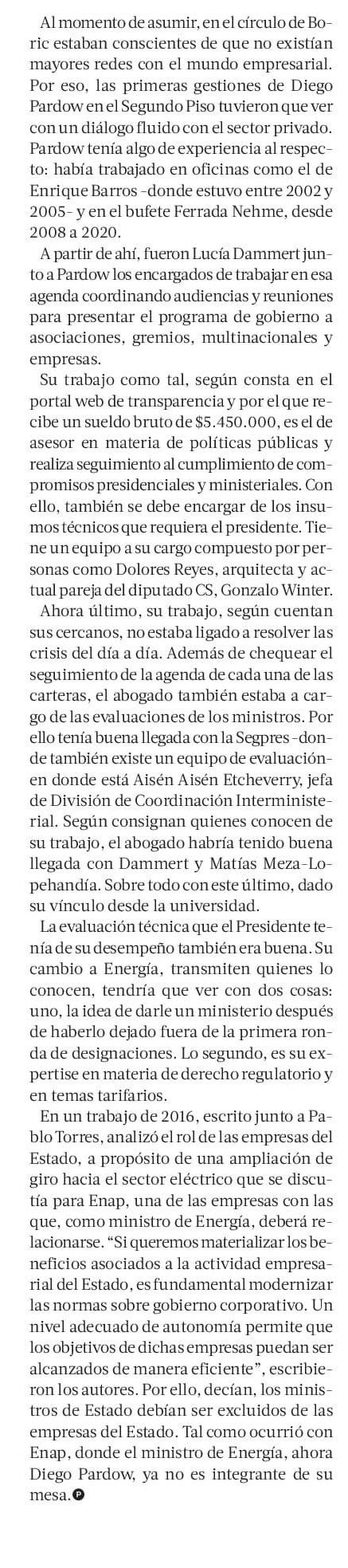 Diego Pardow, del segundo Piso al Ministerio de Energía 07-09-2022 La Tercera |