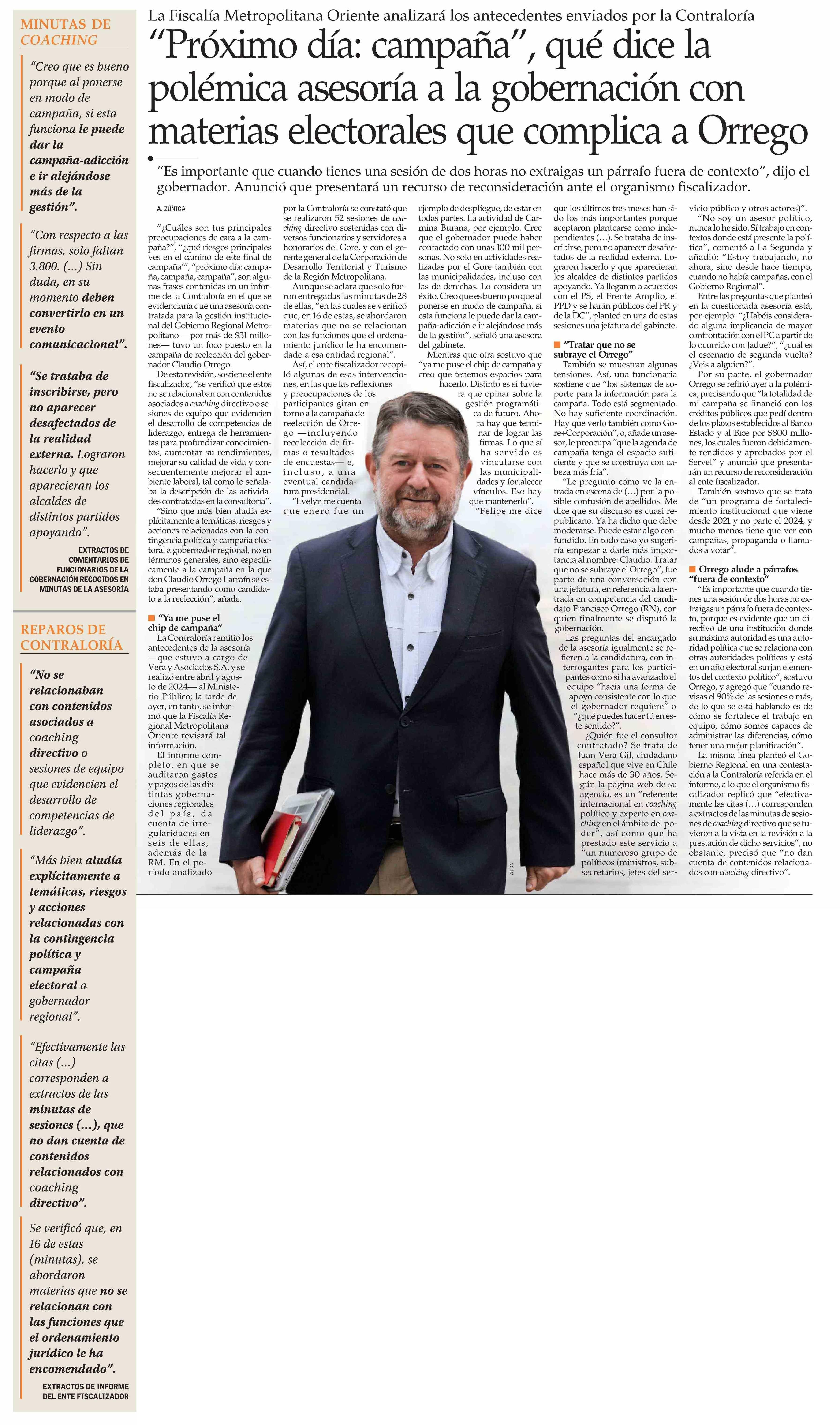 "Próximo día: campaña", qué dice la polémica asesoría a la gobernación con materias electorales que complica a Orrego 06-06-2025 El Mercurio |