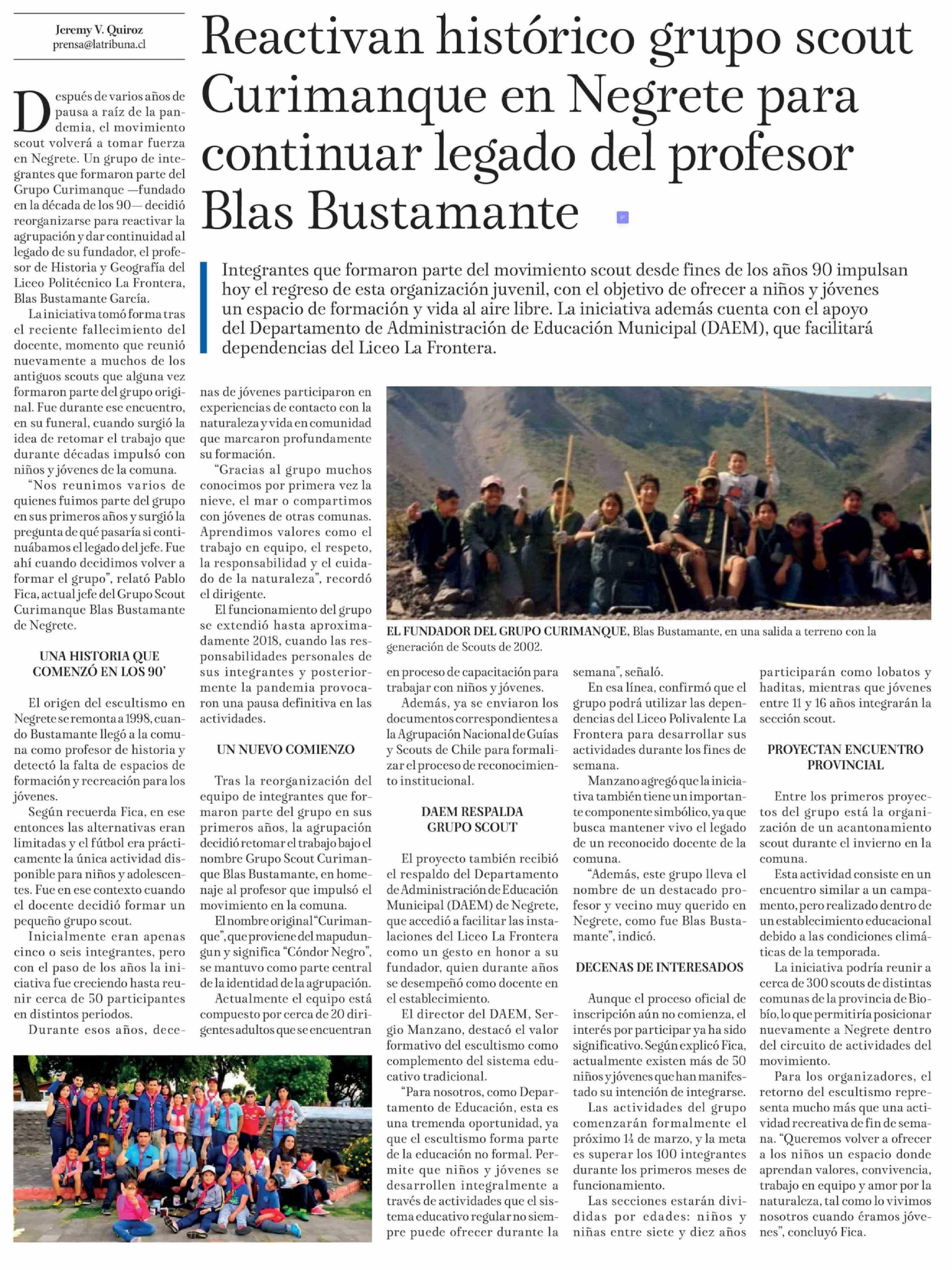 Título: Reactivan histórico grupo scout Curimanque en Negrete para continuar legado del profesor Blas Bustamante
