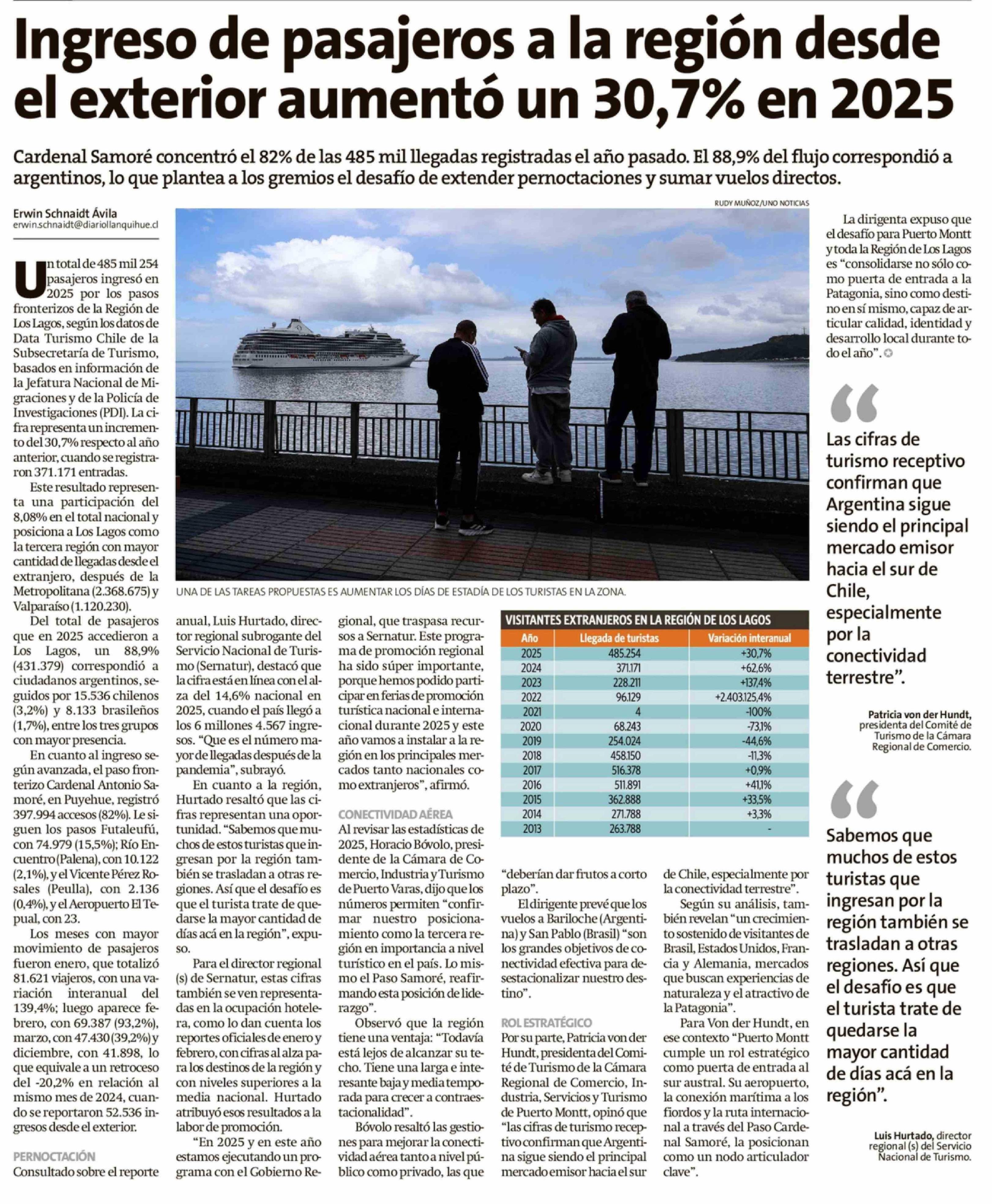 Ingreso de pasajeros a la región desde el exterior aumentó un 30,7% en 2025 23-02-2026 La Estrella de Chiloé |