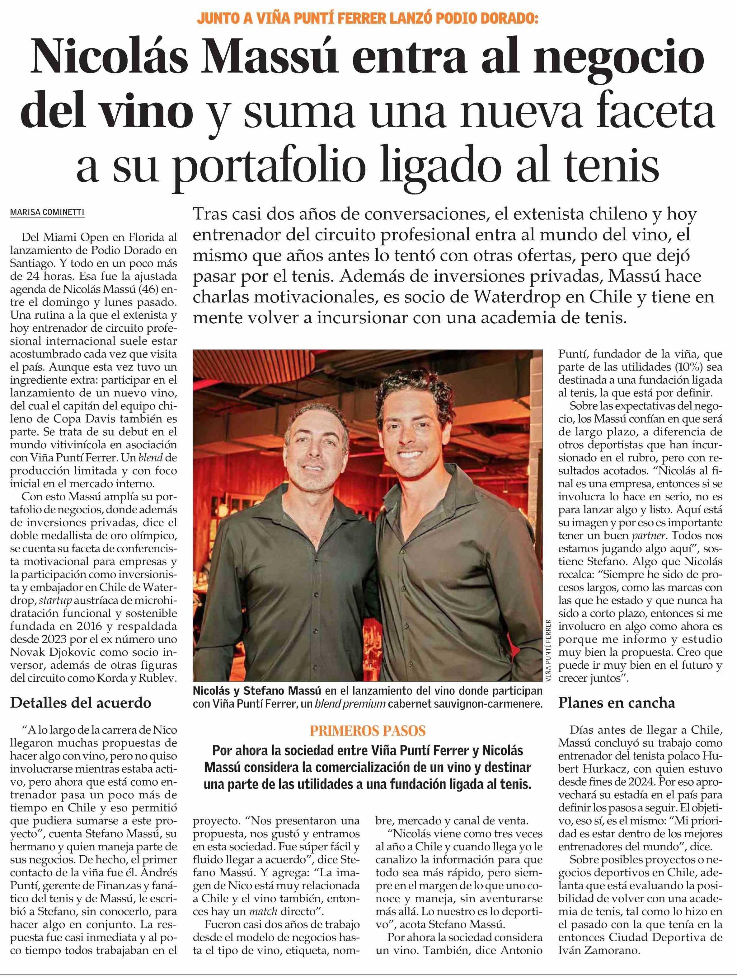 Título: Nicolás Massú entra al negocio del vino y suma una nueva faceta a su portafolio ligado al tenis
