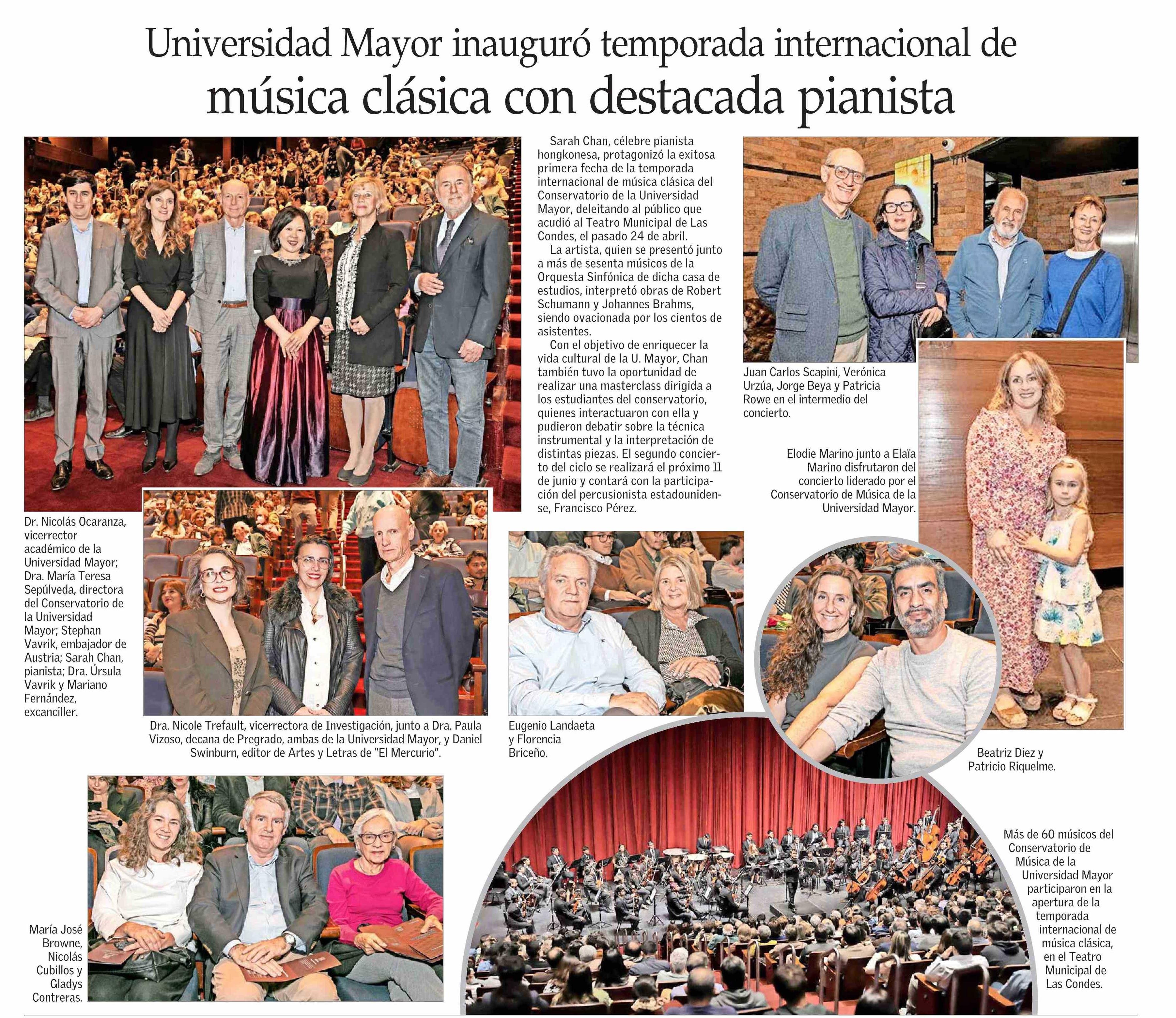 Universidad Mayor inauguró temporada internacional de música clásica con destacada pianista 12-05-2024 El Mercurio |