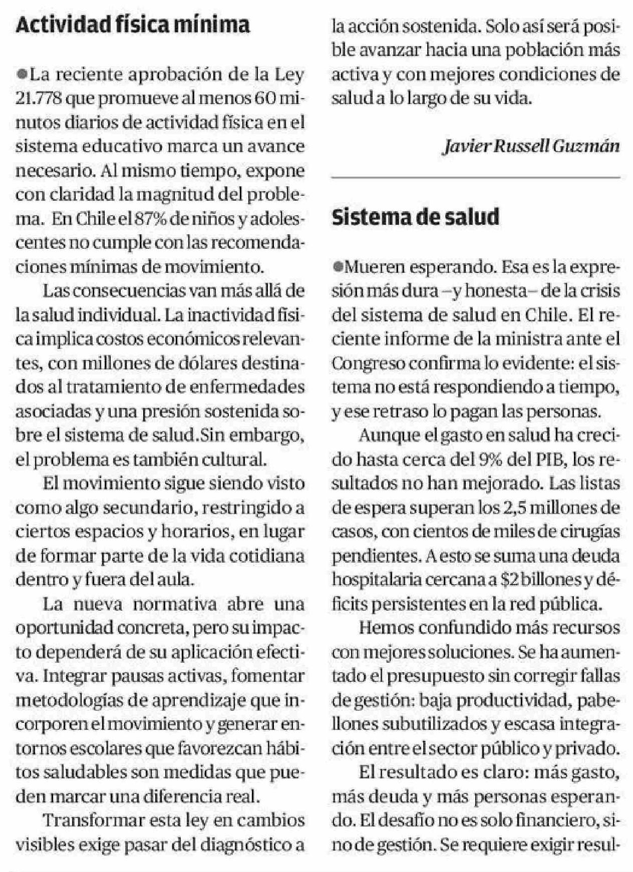 CARTAS: Actividad física mínima 12-04-2026 El Mercurio de Calama |