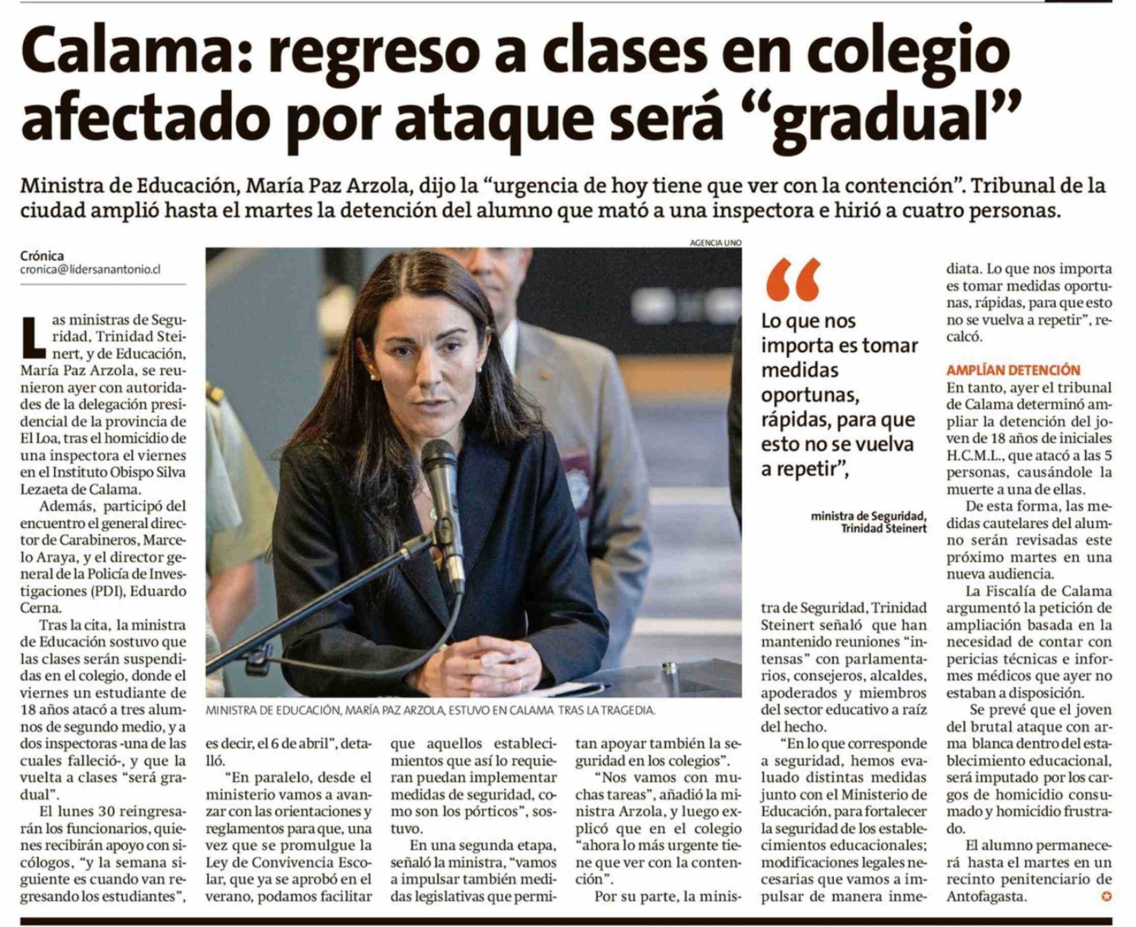 Título: Calama: regreso a clases en colegio afectado por ataque será "gradual"