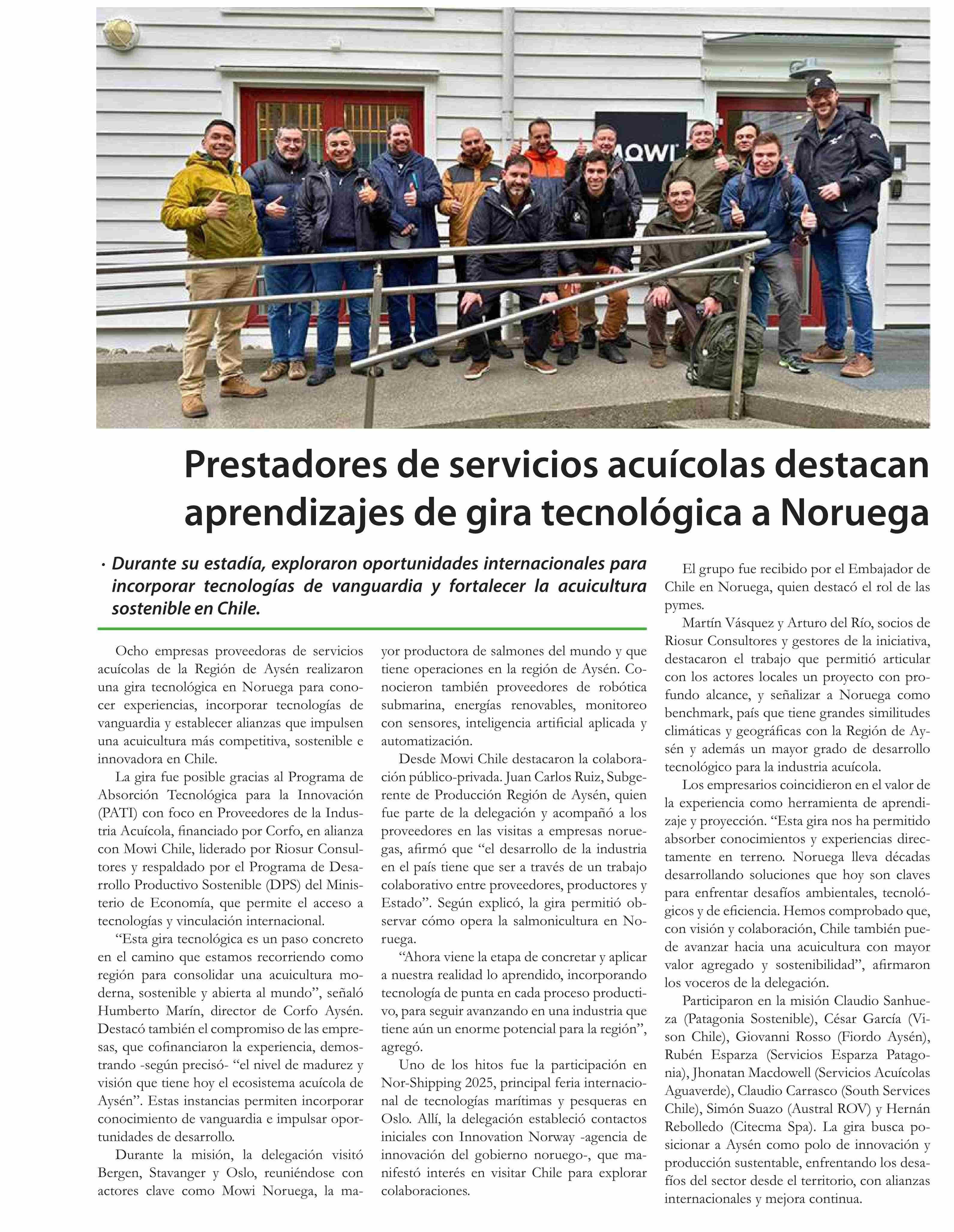 Prestadores de servicios acuícolas destacan aprendizajes de gira tecnológica a Noruega 17-06-2025 El Divisadero |