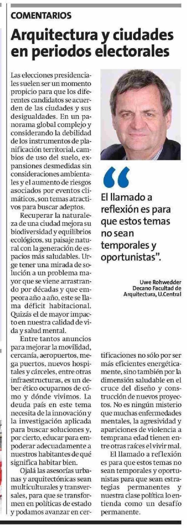 Columnas de Opinión: Arquitectura y ciudades en periodos electorales 19-06-2025 La Estrella de Arica |