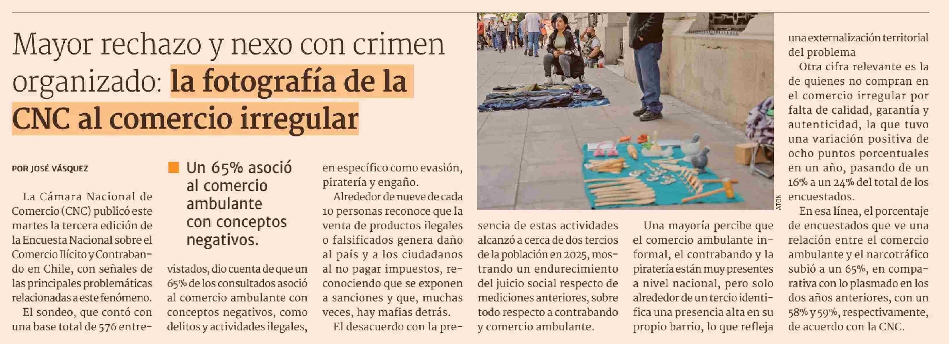 Mayor rechazo y nexo con crimen organizado: la fotografía de la CNC al comercio irregular 07-01-2026 Diario Financiero |