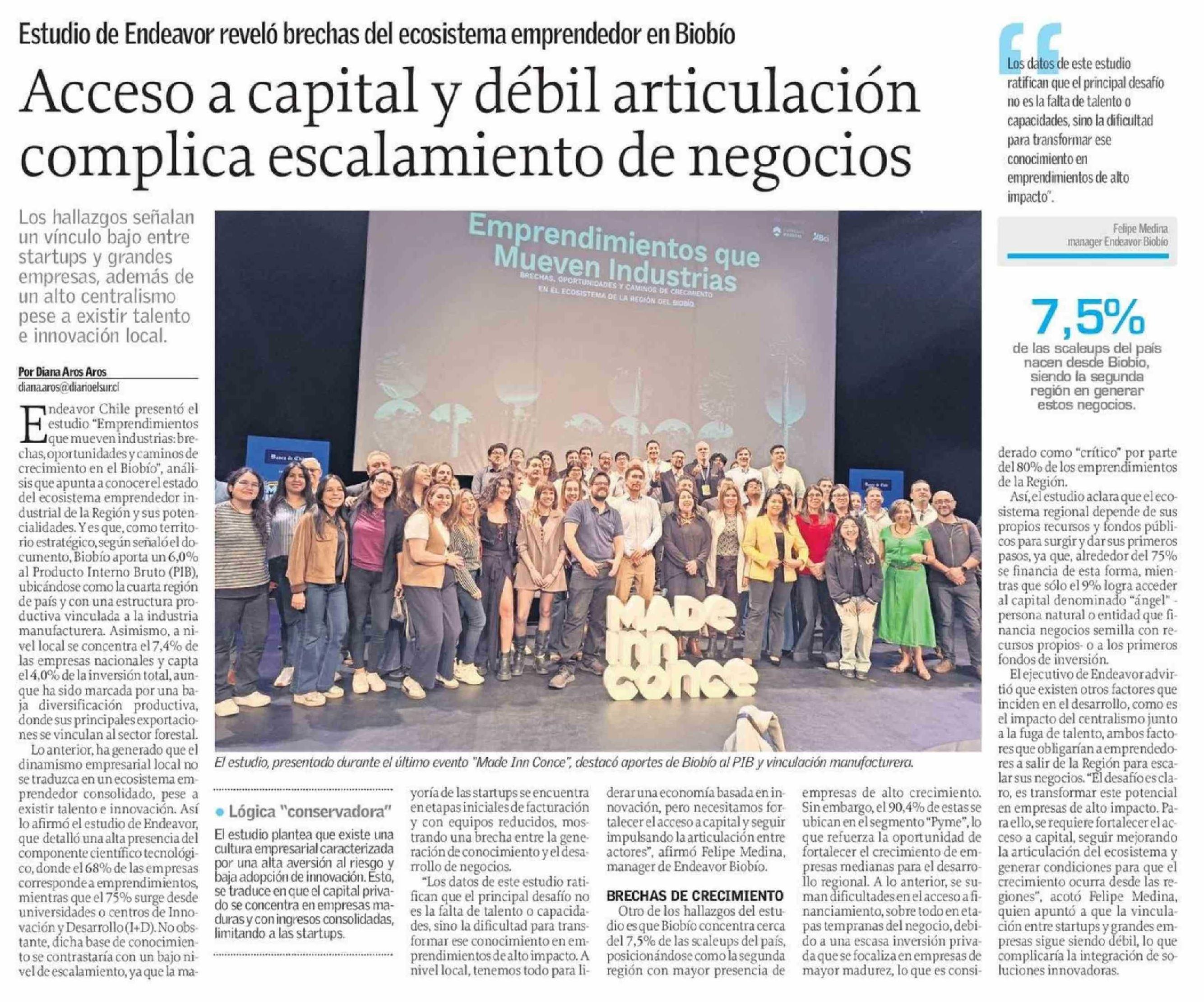 Acceso a capital y débil articulación complica escalamiento de negocios 21-04-2026 El Sur |