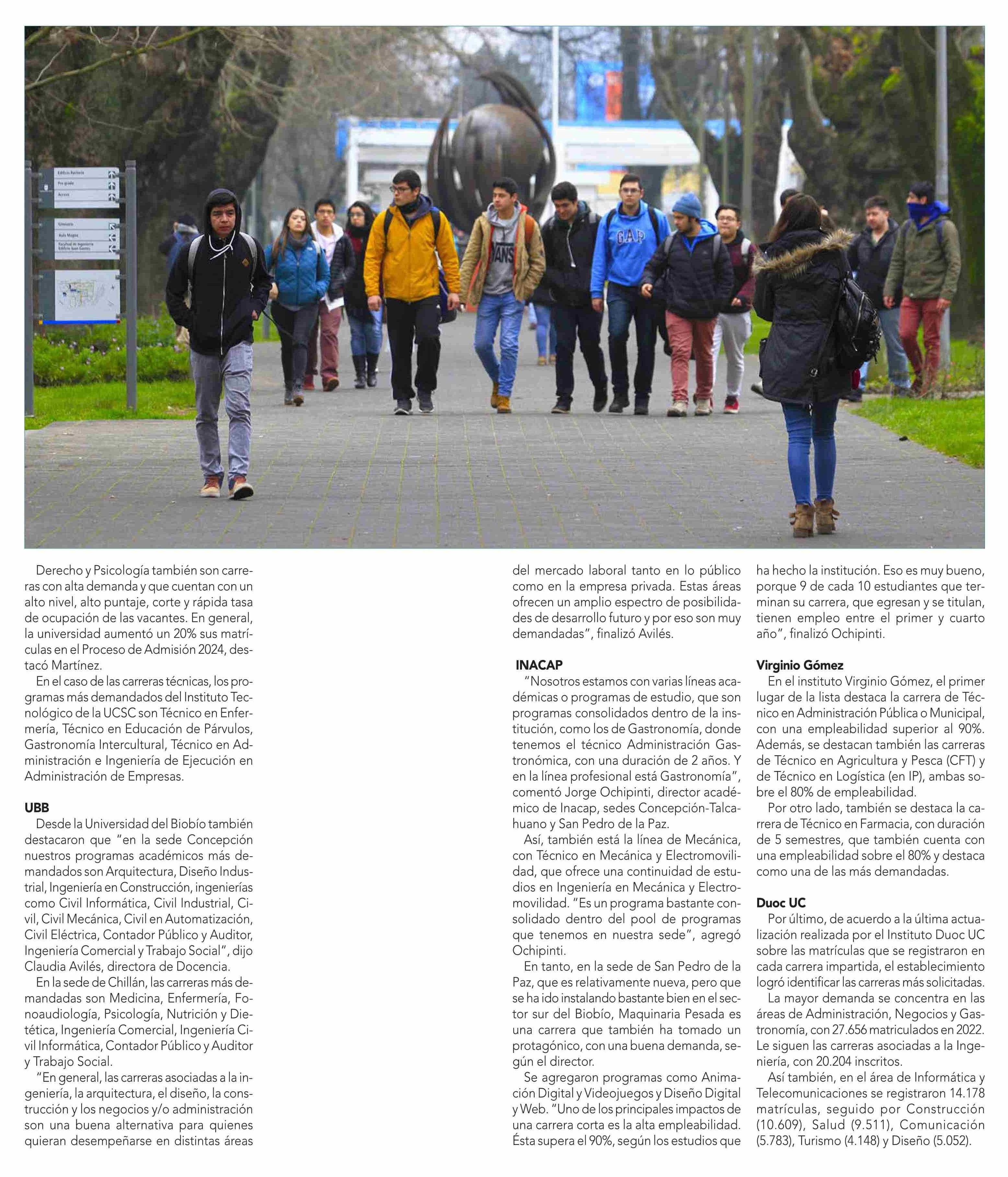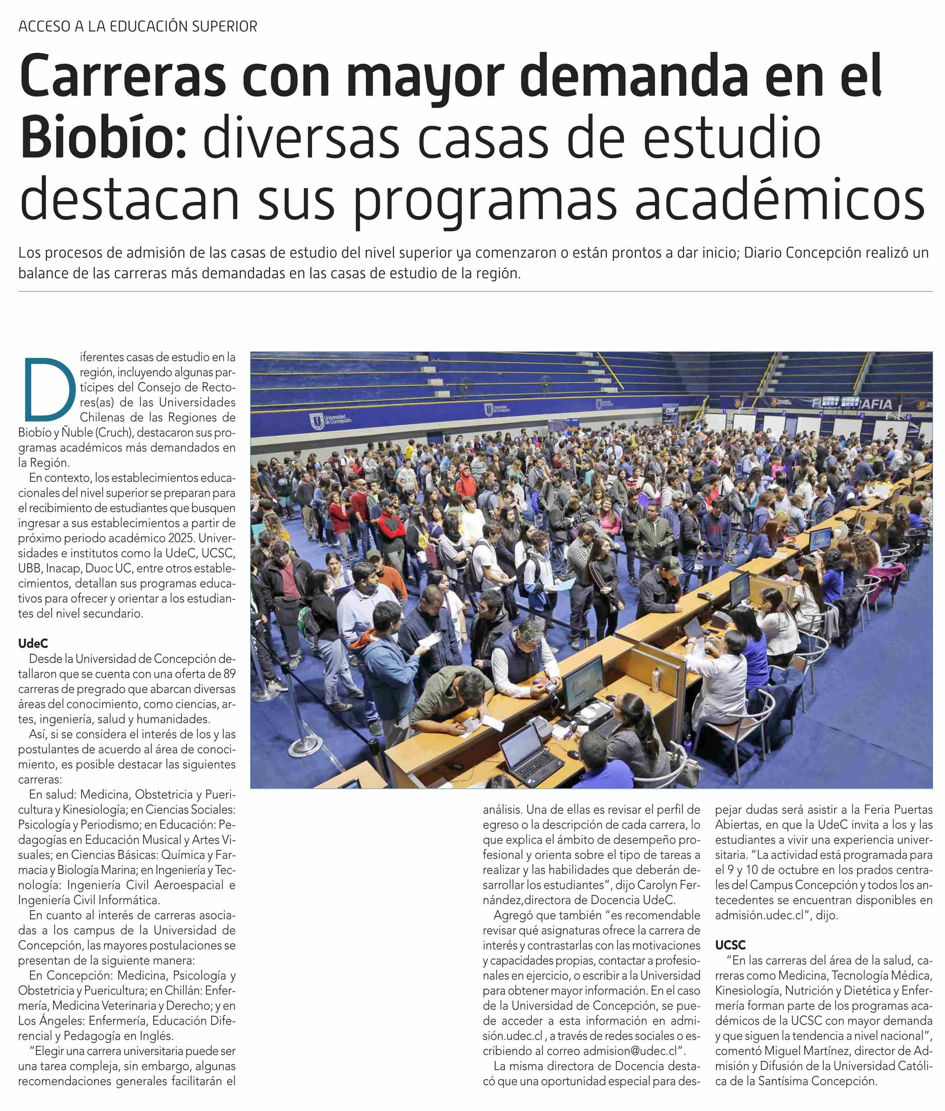 Carreras con mayor demanda en el Biobío: diversas casas de estudio destacan sus programas académicos 07-10-2024 Diario Concepción |