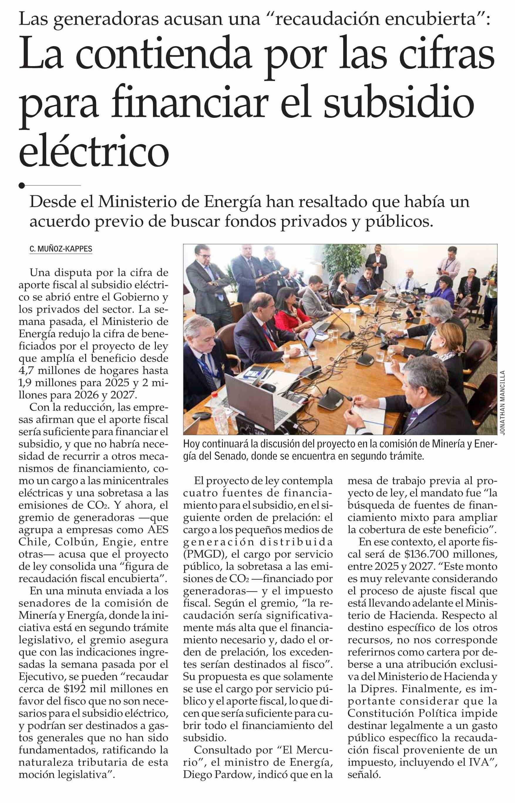 La contienda por las cifras para financiar el subsidio eléctrico 04-06-2025 El Mercurio |