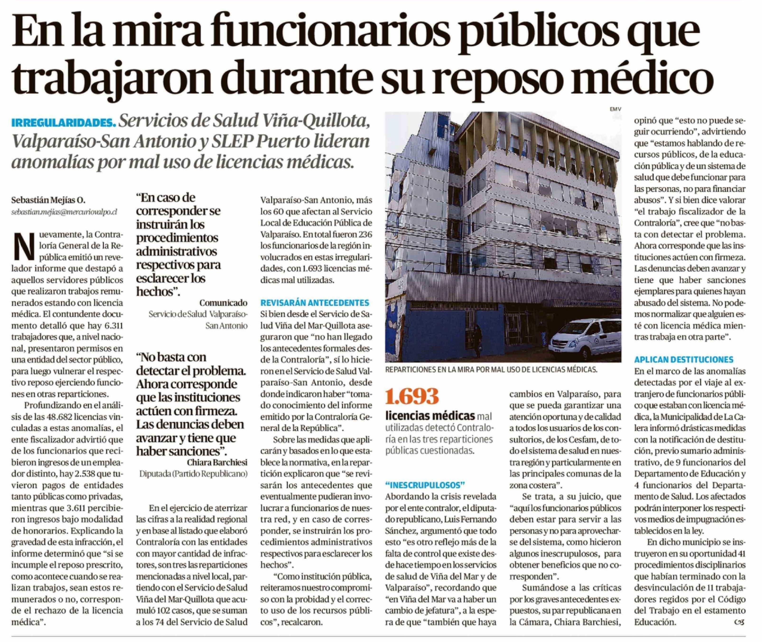 En la mira funcionarios públicos que trabajaron durante su reposo médico 01-04-2026 El Mercurio de Valparaíso |