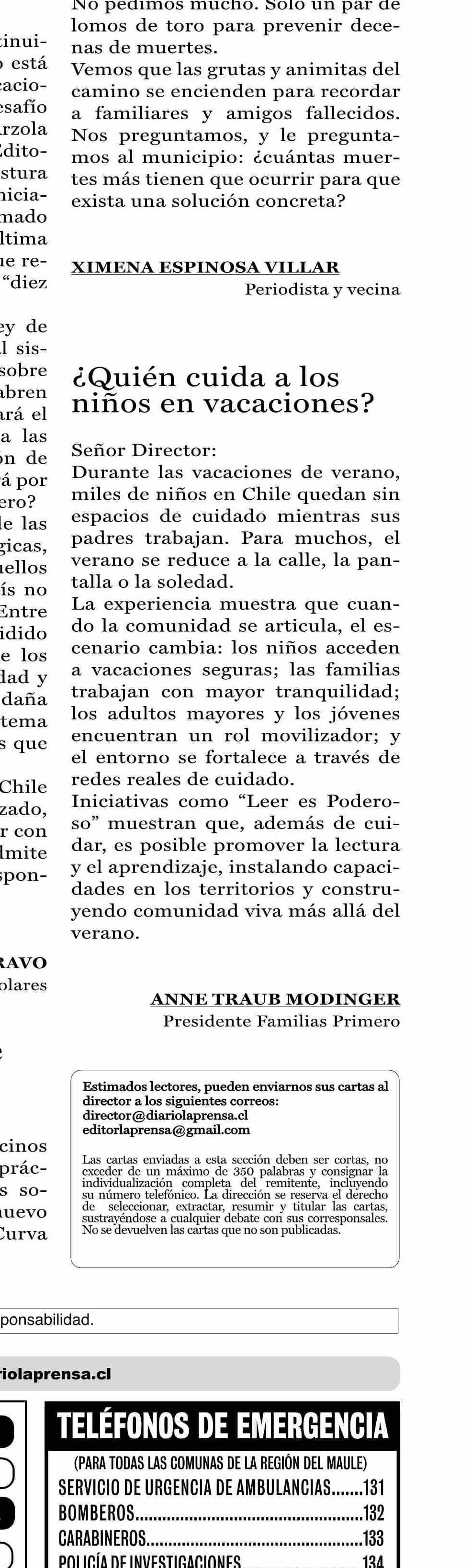 Cartas: Educación: continuidad, convicción y urgencias 29-01-2026 La Prensa de Curicó |